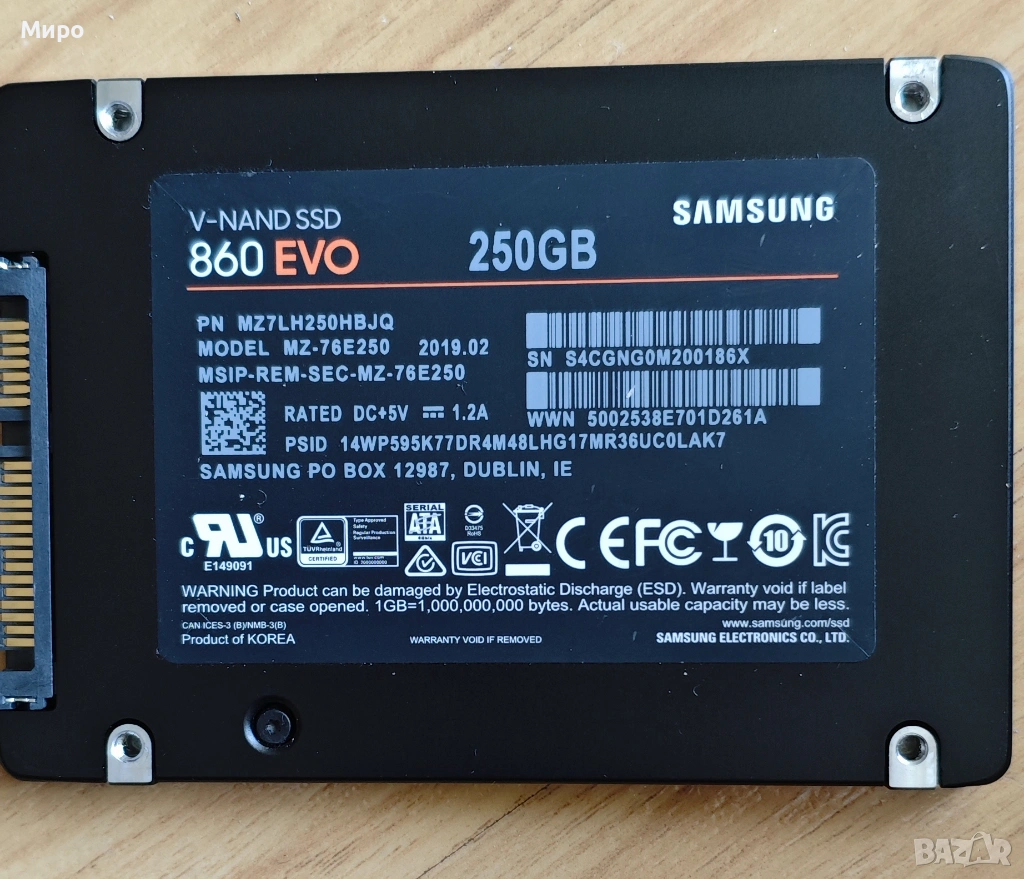 5. SSD - 250 Gb Samsung 860 EVO, Sata 3