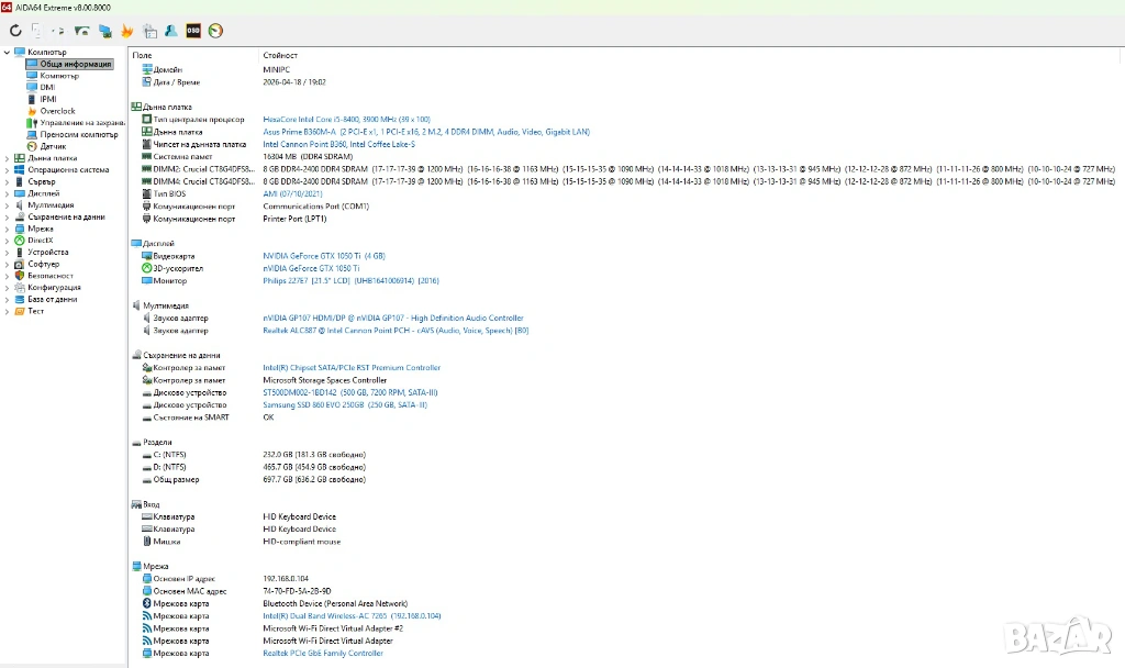 Mini PC (Мини компютър) Prime B360, I5-8400, GTX 1050 Ti Low Profile, SSD