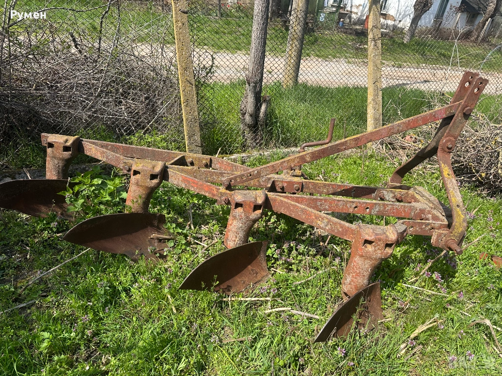 Продавам четирикорпусен навесен плуг (4х25) в добро работно състояние. Машината е изключително здрава, масивна и готова да влезе в браздата след минимална подготовка.
