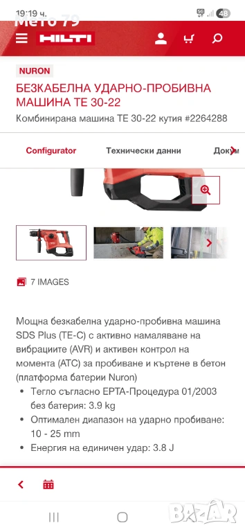 Hilti TE 30-22 Nuron Перфоратор , снимка 1 - Други инструменти - 54270605 Hilti TE 30-22 Nuron Перфоратор , снимка 2 - Други инструменти - 54270605 Hilti TE 30-22 Nuron Перфоратор , снимка 3 - Други инструменти - 54270605 Hilti TE 30-22 Nuron Перфоратор , снимка 4 - Други инструменти - 54270605 Hilti TE 30-22 Nuron Перфоратор , снимка 5 - Други инструменти - 54270605 Hilti TE 30-22 Nuron Перфоратор , снимка 6 - Други инструменти - 54270605 Hilti TE 30-22 Nuron Перфоратор , снимка 7 - Други инструменти - 54270605 Hilti TE 30-22 Nuron Перфоратор , снимка 8 - Други инструменти - 54270605 Hilti TE 30-22 Nuron Перфоратор , снимка 9 - Други инструменти - 54270605 Hilti TE 30-22 Nuron Перфоратор , снимка 10 - Други инструменти - 54270605 Hilti TE 30-22 Nuron Перфоратор , снимка 11 - Други инструменти - 54270605 1/11