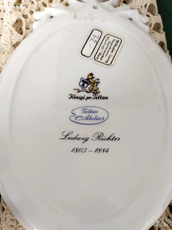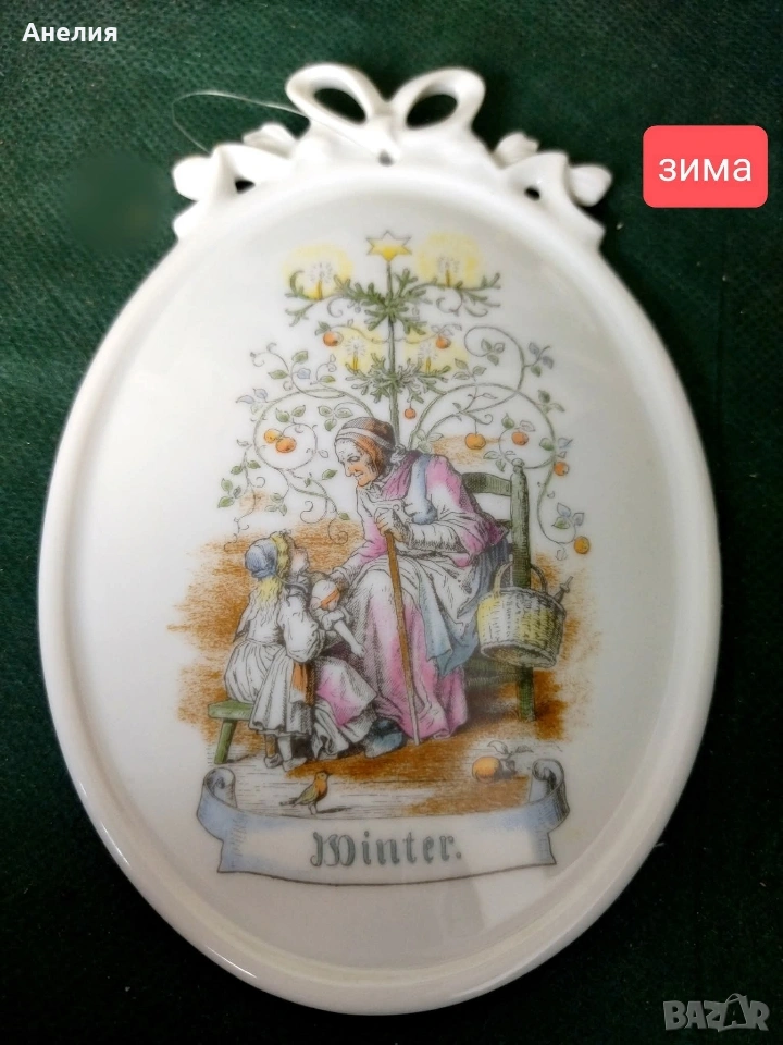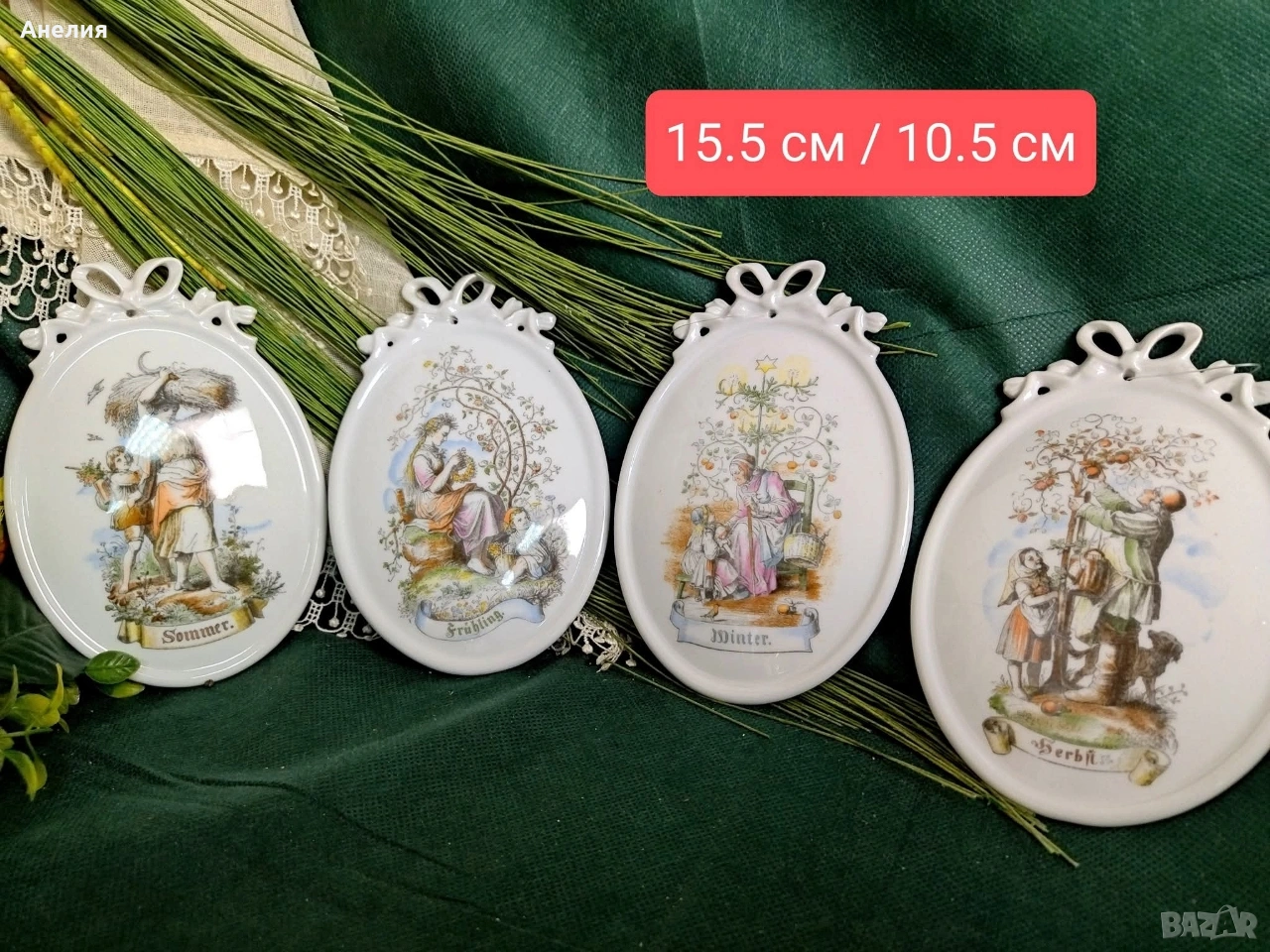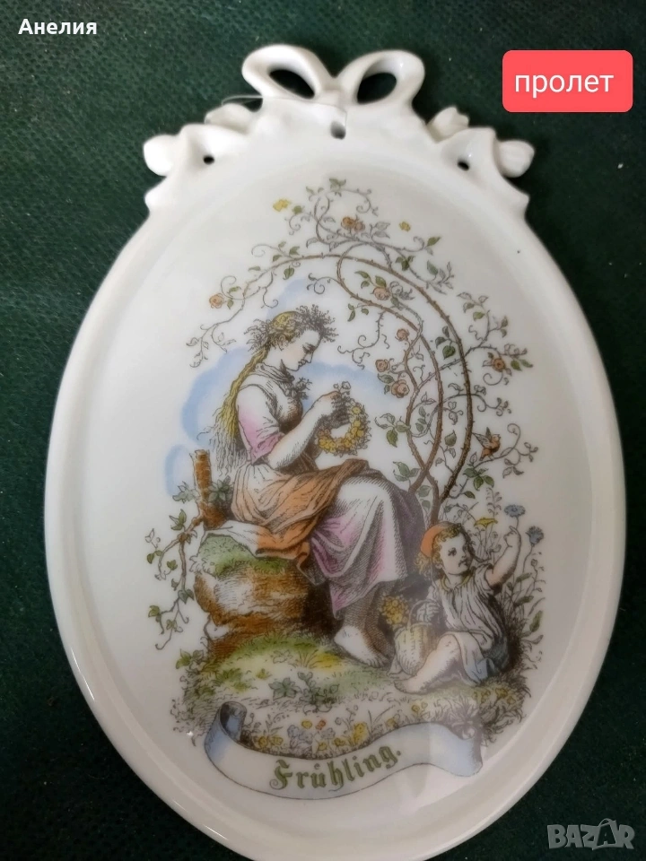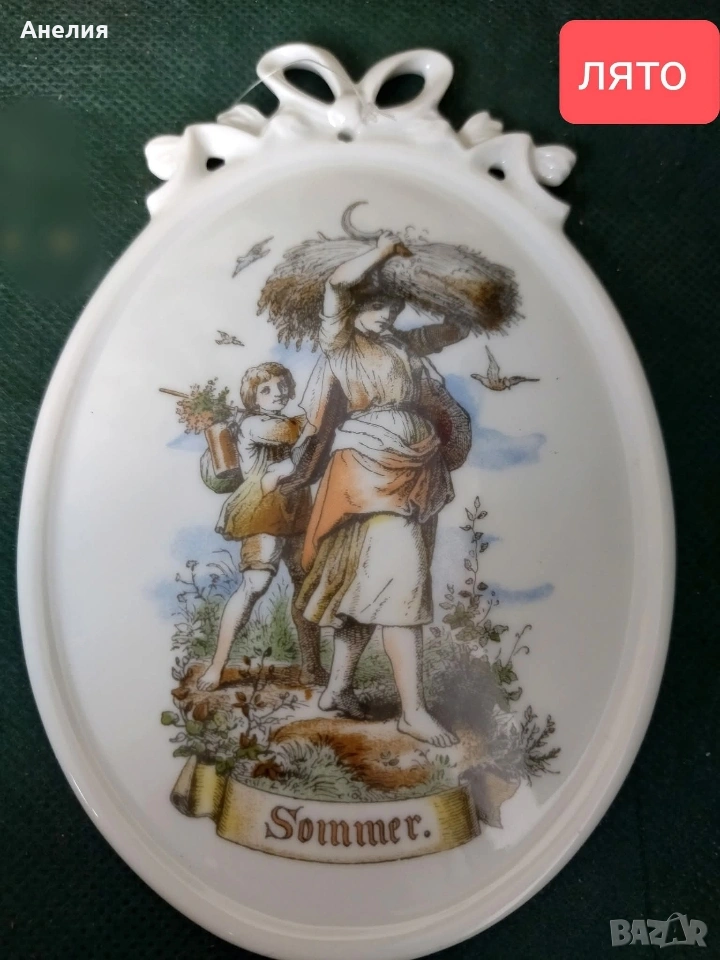 Четири порцеланови стенни плочи, произведени от Tettau Atelier Porzellan, изобразяващи четирите сезона.