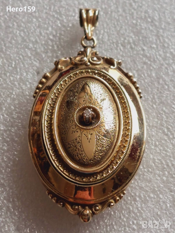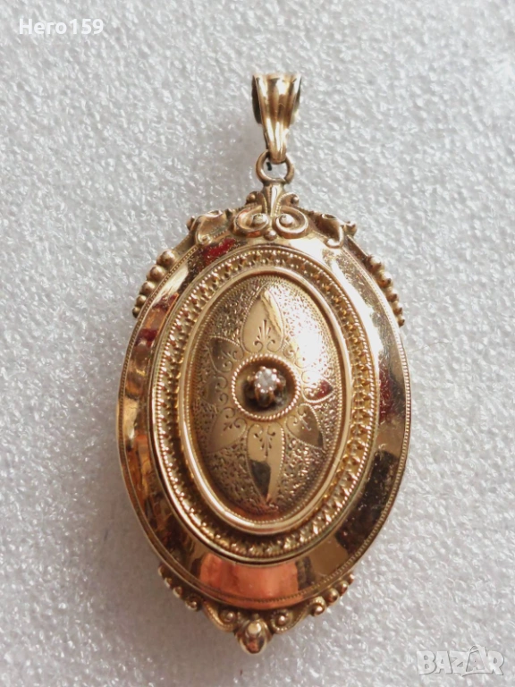 Стар златен 8 каратов викториански медальон с брилянт → Обява 54271069