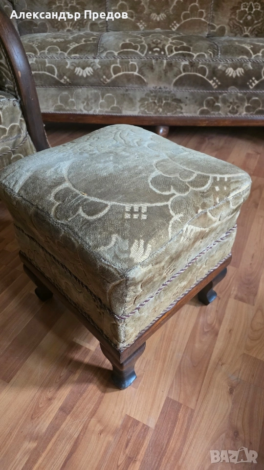 Красив антикварен диван с два фотьойла и табуретка в добро състояние.