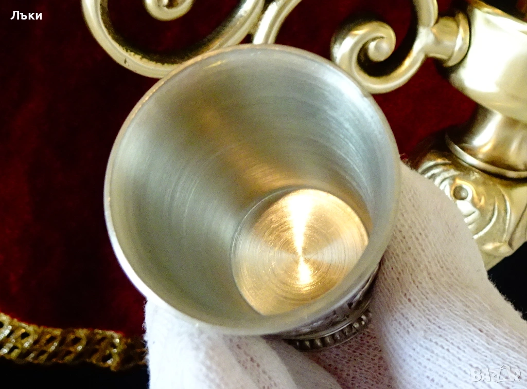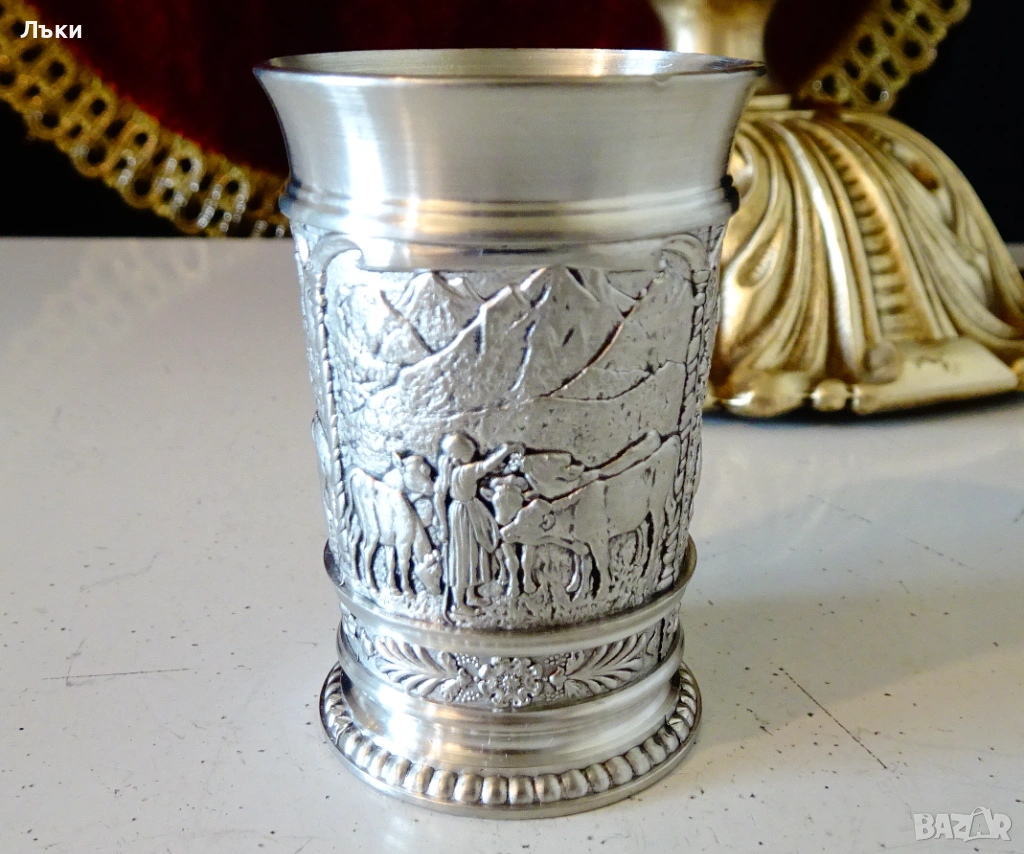 Стара калаена чаша за ракия,ликьор,майсторска ръчна