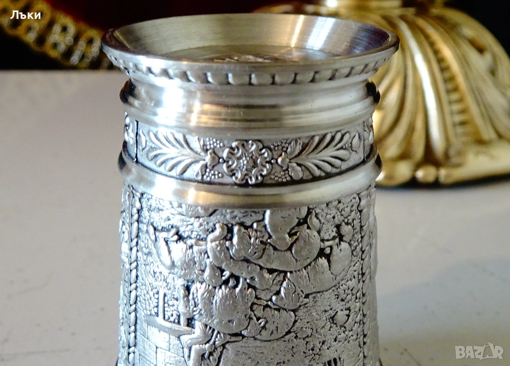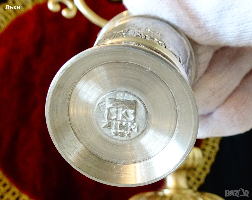 изработка от 95% калай и 5% сребро,маркирана с инициалите на световно