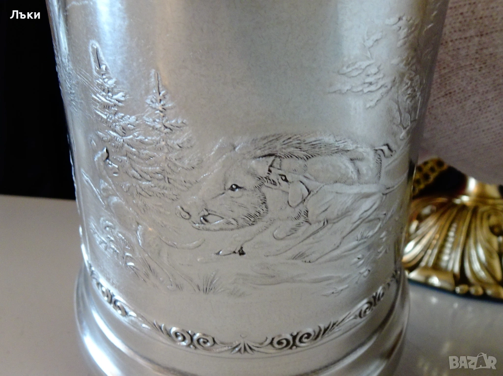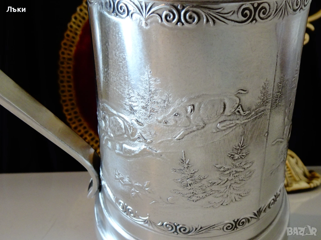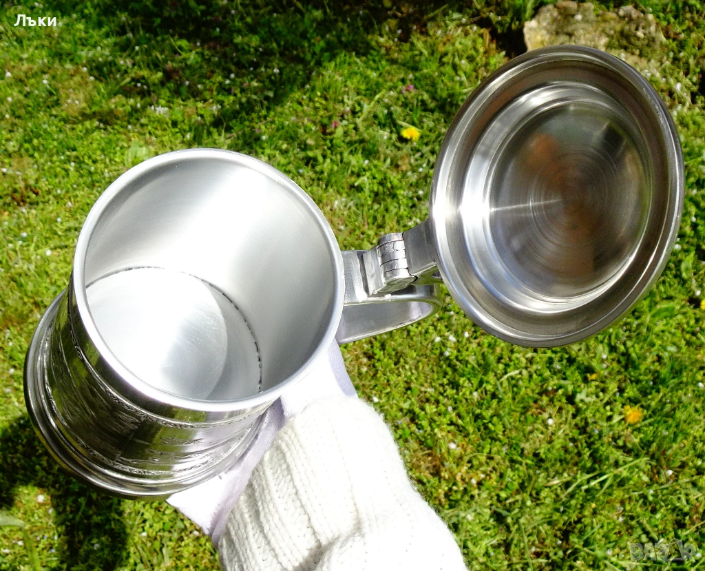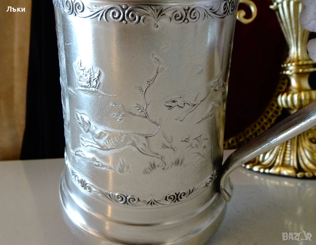 битка.Високо качествена,масивна халба със сребърен блясък от вън и от