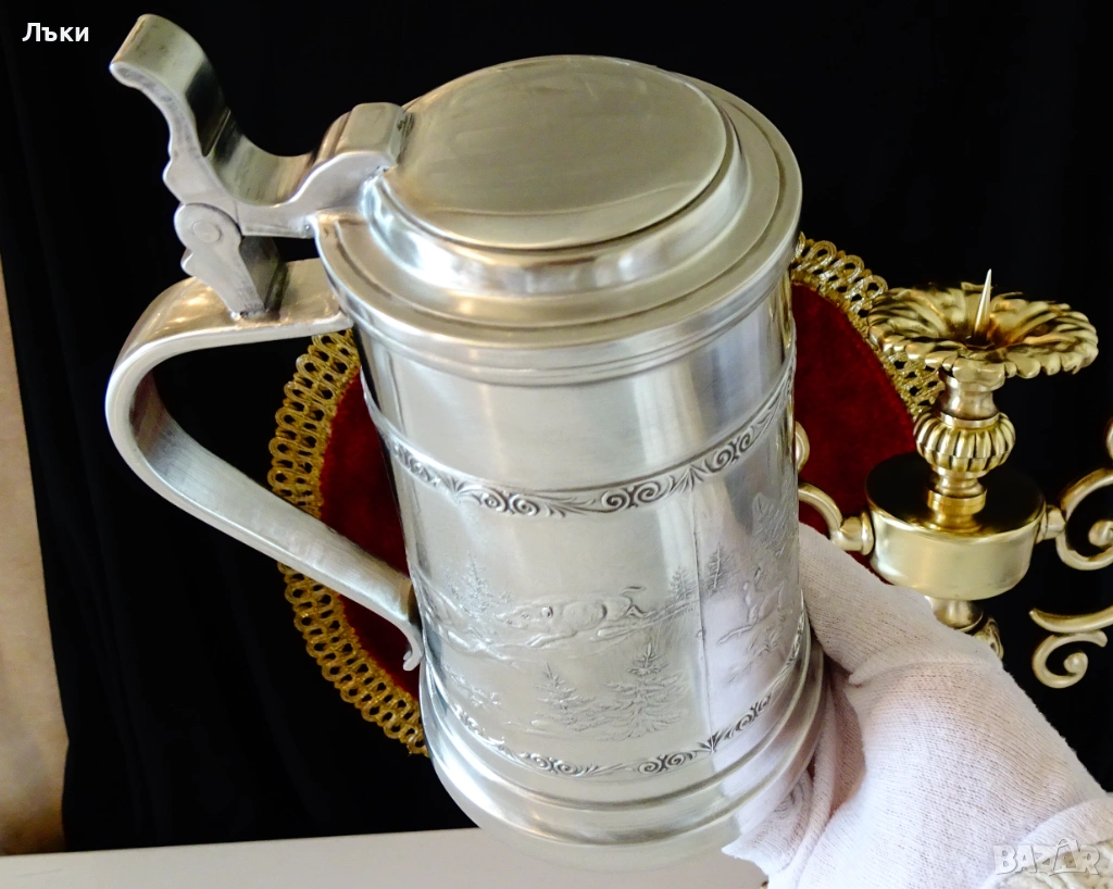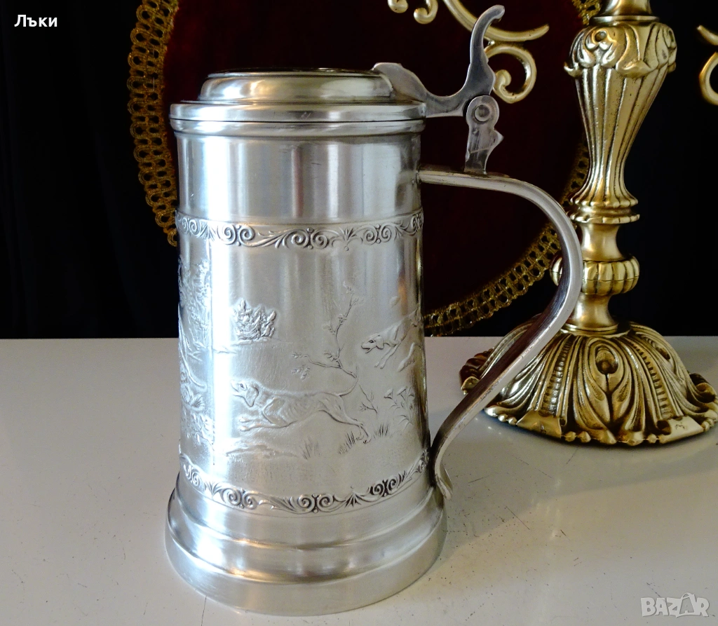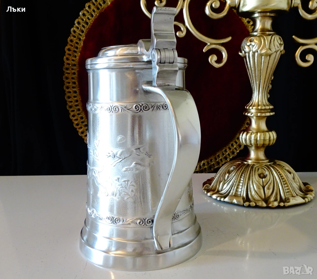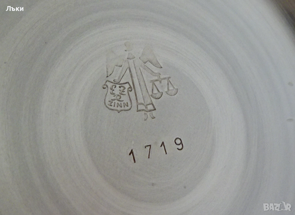 изработка от 95% калай и 5% сребро,маркирана с релефен печат на производителя EZR Zinn.Декорирана с
