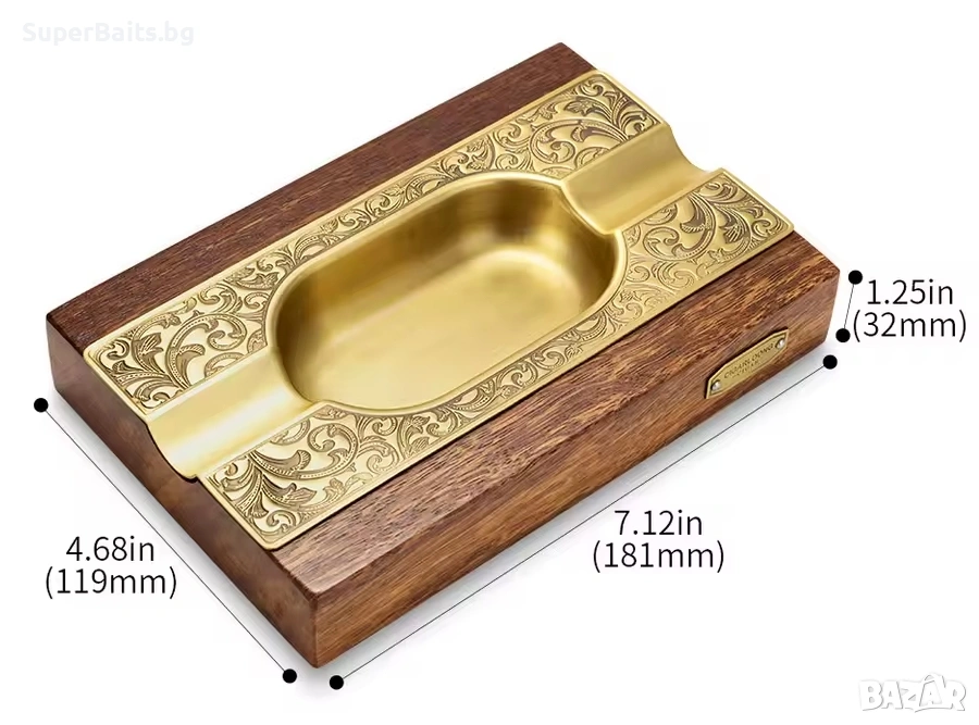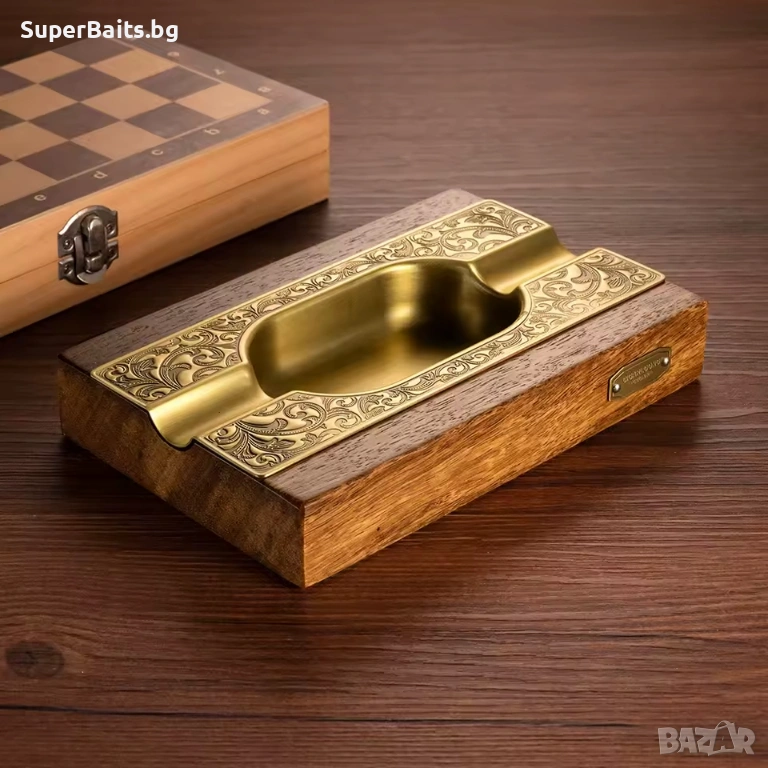Премиум, луксозен пепелник от дърво и месинг → Обява 54271816