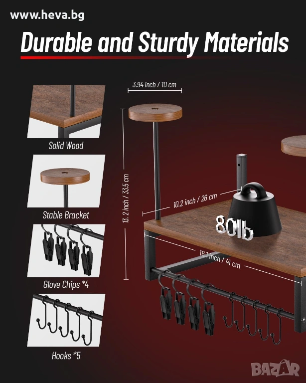 Стойка за стена за мотоциклетна каска, Капацитет до 36 кг.