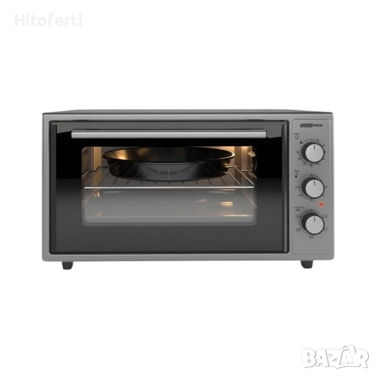 Мини фурна 50 литра, таймер и термостат, мощност на фурната – 1600 W, 0+5 функции, биметален термостат, нагревателен елемент тип M (отгоре и отдолу), емайлирана вътрешна кухина (ляв-десен-горен-долен панел), метална защита срещу съпротивление, щепсел от европейски тип , 1 квадратна тава + 1 Cr-Ni решетка, 1 кръгла тава U тип уплътнение, двойна стъклена врата на фурната, стиропор + кутия, лампа, турбо вентилатор, ПЪЛНО СИВО
