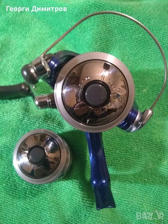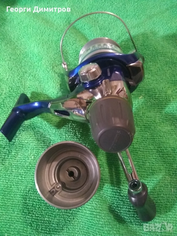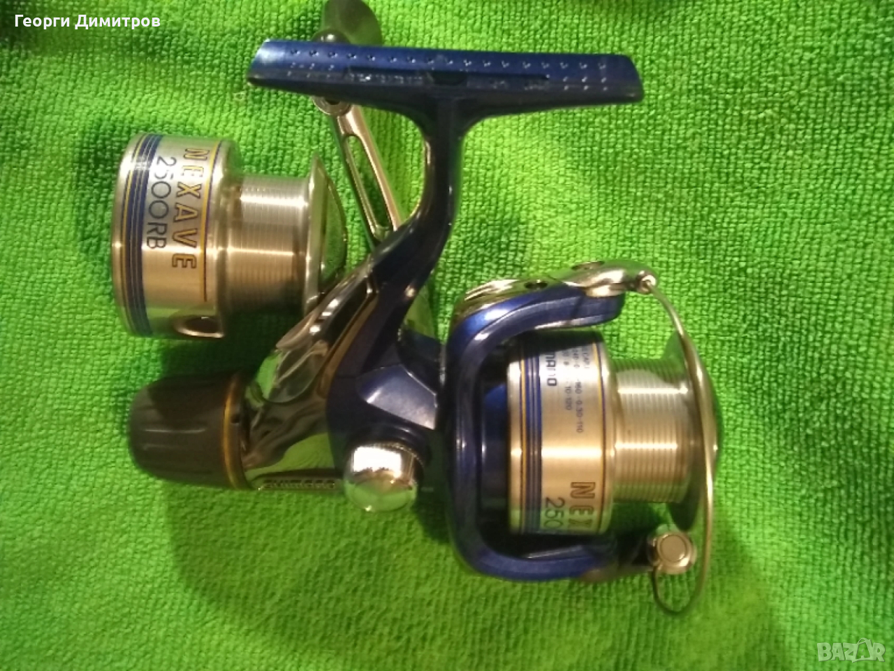 Nexave 2500RB от предходните, по-добри серии на Shimano. С елиптичната предавка като на Exage и прецизният заден аванс с 3+1 фрикционни диска и 3 шайби. За сравнение, сегашните са с 1+1 диска, една шайба и дистанционна втулка. Напълно обслужена за 15€ (почистена до последното винче и смазана с качествени лубриканти). И трите съчмени лагери са сменени с нови от най-висок клас (ABEC9), неръждаеми, капсуловани, по 3 евро за брой. Работи гладко "като масло" и външно е като нова. Продава се с резервна алуминиева шпула и получавате оригиналните лагери - още вършат работа.