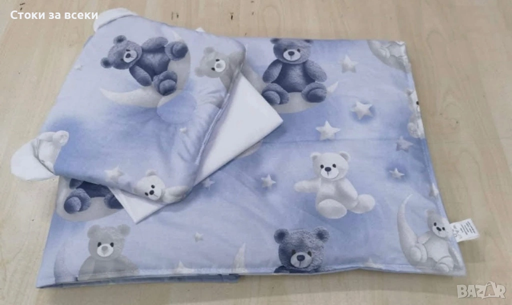 Пелената е 2 пласта ранфорс а завивката е 2 пласта ранфорс и пълнеж 80гр силиконова вата!