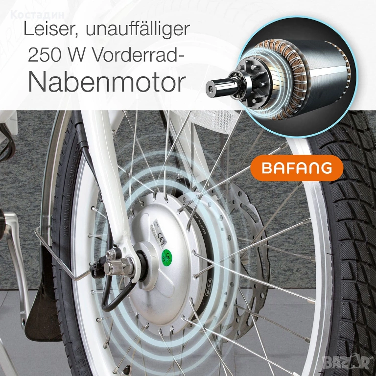 Тих ненатрапчив 250W BAFANG мотор на предната главина