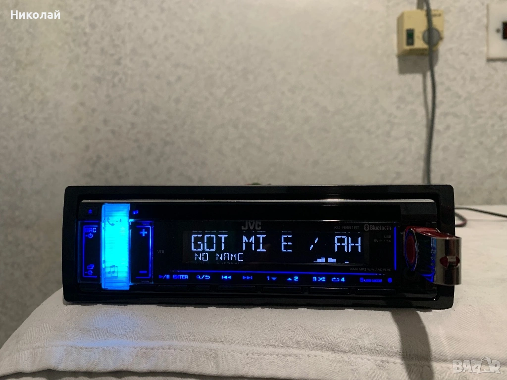 Авто Сд плеър JVC в много добро състояние .Смяна на цветове.Работи безпроблемно на:диск,флашка(USB),блутут,аукс и радио!