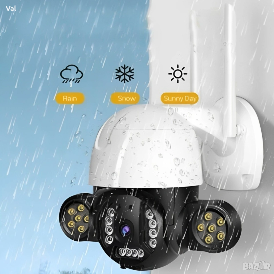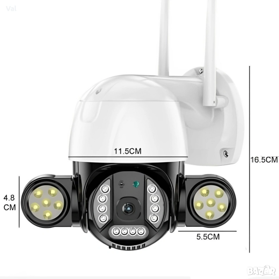 Висока резолюция 5MP: Наслаждавайте се на видео с разделителна способност 2560x1920 за кристално ясни изображения. С 12 бели и 12 инфрачервени светлини, камерата осигурява цветни и черно-бели видеоклипове дори през нощта. Белите светодиоди се включват при засичане на движение. Камерата може да се движи на 270° хоризонтално и да се накланя на 90° вертикално, осигурявайки 360° панорамно покритие. Засича движение и автоматично следи движещи се обекти, като прожекторите се включват при засичане на човек. Вграденият микрофон и високоговорител позволяват двупосочна комуникация чрез приложението, идеално за общуване със семейството или за изплашване на нежелани гости.