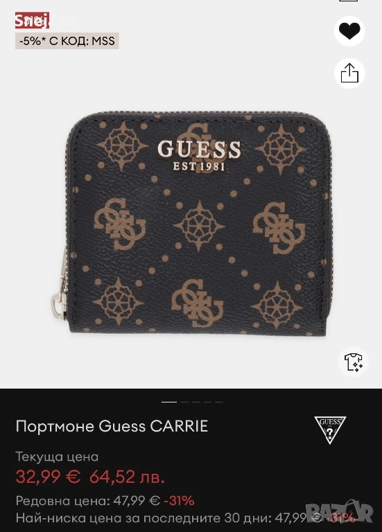 Портмоне GUESS за 27€ от 34€ → Обява 54275467