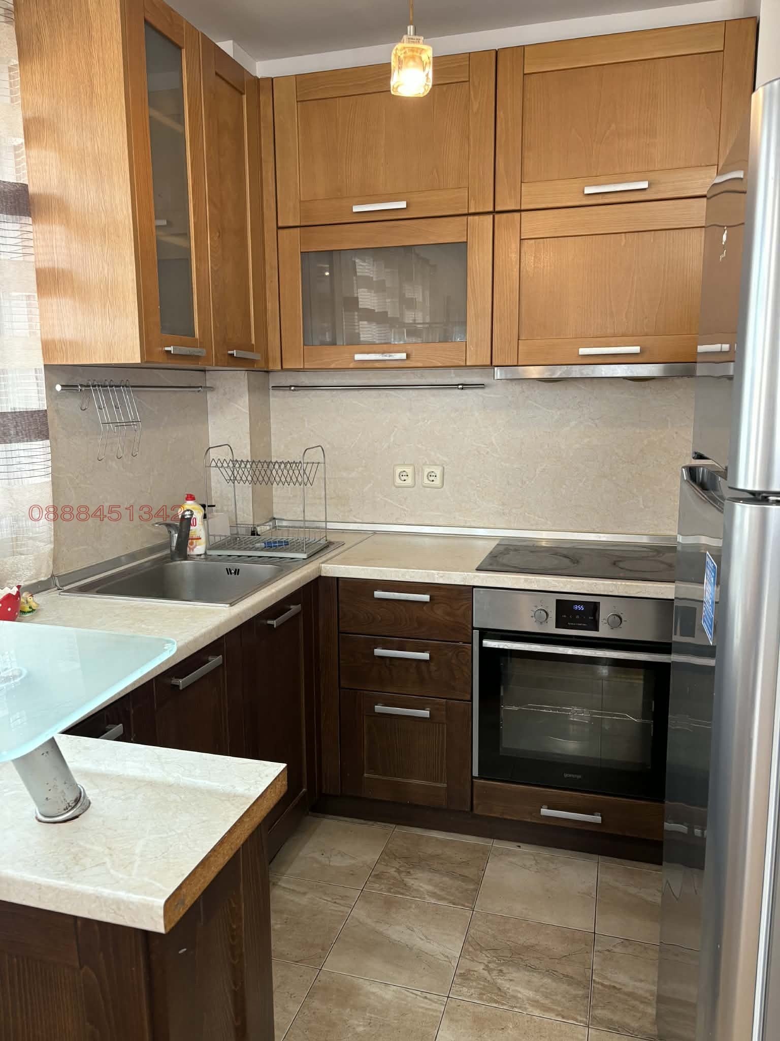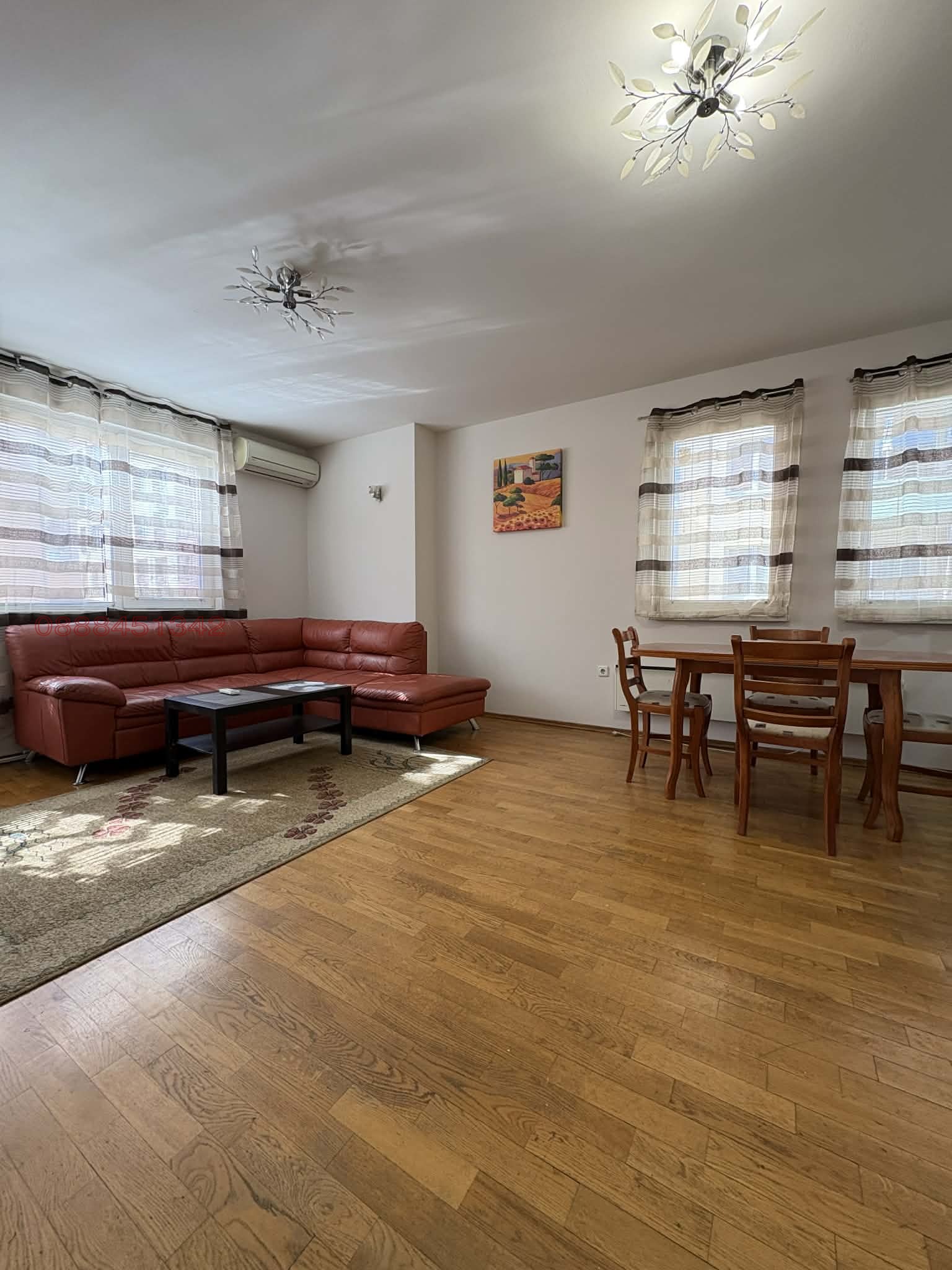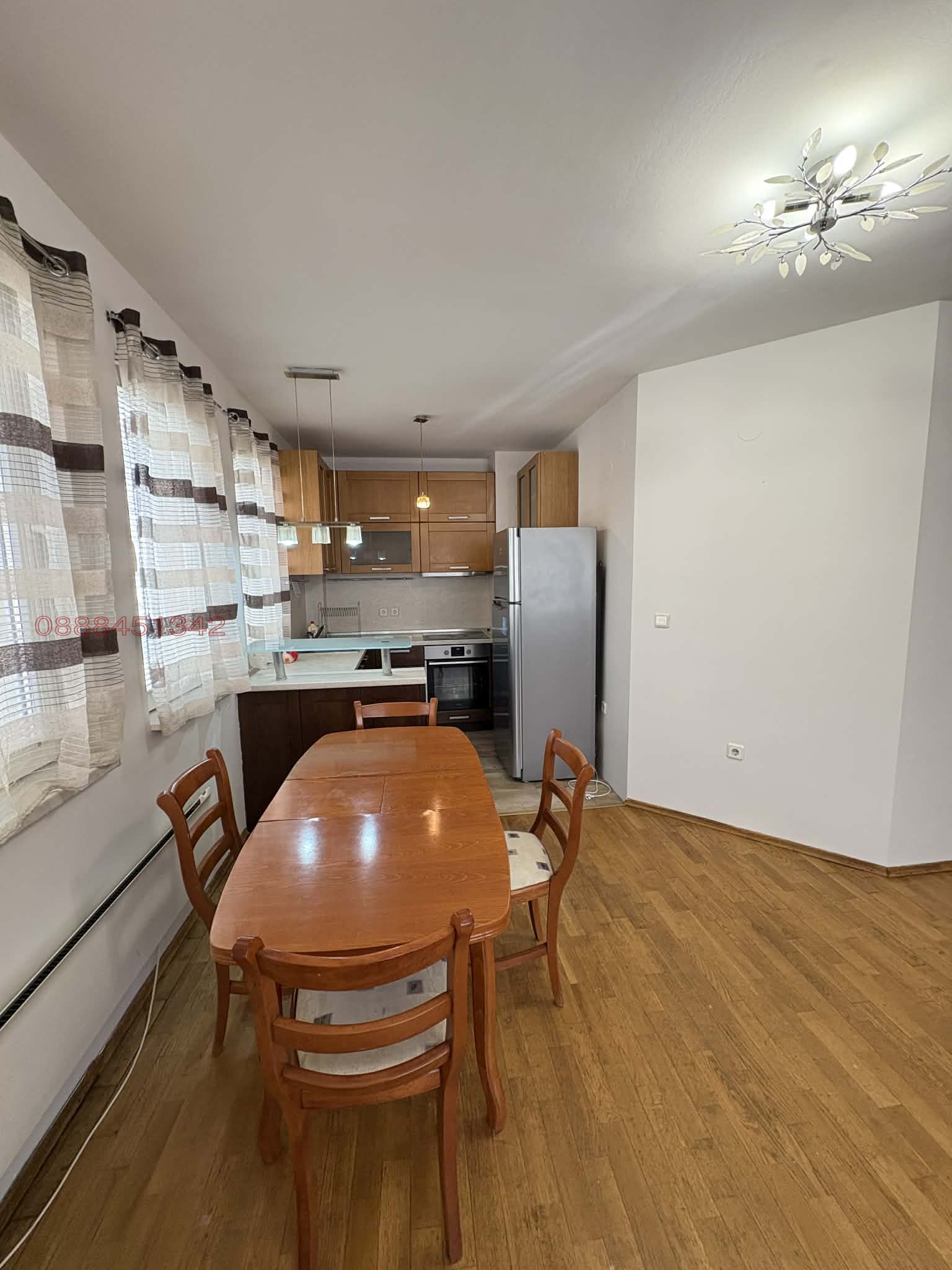Собственик отдава под наем напълно обзаведен тристаен апартамент, състоящ се от две големи спални, всекидневна с кухненски бокс, баня с тоалетна, отделно тоалетна и тераса. Намира се в малка, тухлена, луксозно изпълнена кооперация в непосредствена близост до метростанция Люлин. Изложение - изток, юг, запад. Отопление на ток с климатик и радиатори Adax. В кухненското обзавеждане е включена миялна машина.