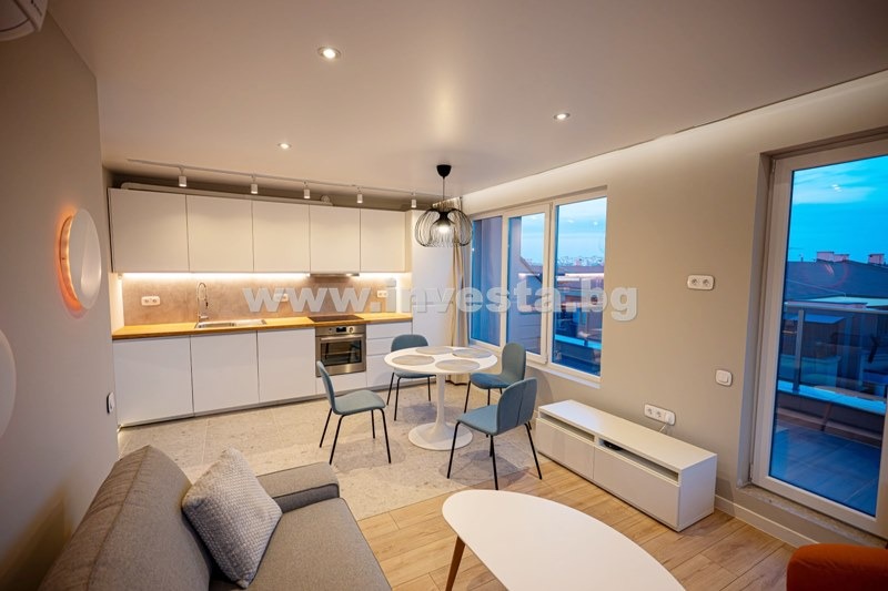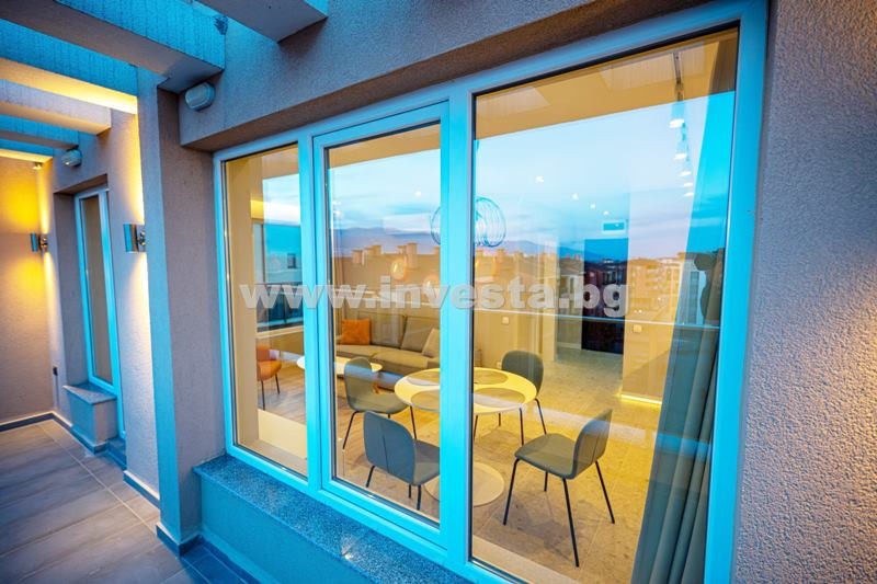 Оферта 43404 Нов, напълно обзаведен луксозен двустаен апартамент, разположен в модерен затворен комплекс с разрешение за ползване. Продава се заедно с външно паркомясто на цена 13000 евро. Апартаментът е светъл и топъл, с изложение юг/изток. Имотът е напълно обзаведен и оборудван, готов за нанасяне или отдаване под наем. Състои се от: Всекидневна обзаведена със стилен диван с кресло, ТВ шкаф, холна маса, трапезна маса с 4 стола: Кухненски бокс оборудван с кухненска мивка със смесител и вградени електроуреди - фурна, котлони, аспиратор, хладилник, пералня и съдомиялна: Спалня с четирикрилен вграден гардероб с огледало и автоматично LED-осветление, спално легло с качествен матрак, нощни шкафчета: Баня с вградена структура, душ система, бойлер, мивка със смесител и огледало, електрическа лира, завършена с висок клас материали: Входно антре с огледало и вградени шкафове: Две просторни тераси по 10кв.м. всяка с гледка към Родопите.