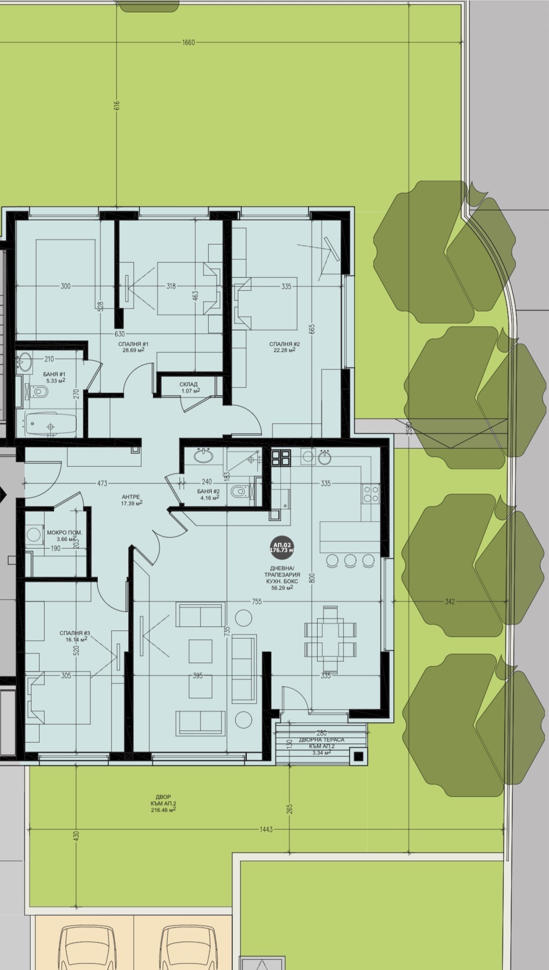 Предлагаме за продажба просторен апартамент с три спални и собствен двор от над 200кв.м., разположен в новострояща се сграда, която ще бъде изпълнена с изключително високо качество на строителство. Имотът съчетава комфорта на градския живот с усещането за къща, благодарение на самостоятелния двор идеален за отдих или семейни събирания. Сградата се отличава с модерна архитектура и първокласни материали: вентилируема фасада от ламинам, висок клас алуминиева дограма, както и използване на естествени материали като гранит и мрамор, гарантиращи стил, устойчивост и дълготрайност. Очаква се сградата да бъде въведена в експлоатация в края на следващата година, като Акт 14 е планиран до края на настоящата година. Апартаментът е проектиран с функционално разпределение, осигуряващо простор и светлина във всяко помещение, което го прави отличен избор както за семейно жилище, така и за инвестиция. Има възможност за закупуване на подземни гаражи. Посочената цена е без ДДС!