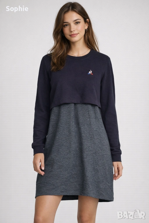 Тъмносиня ежедневна рокля La Coq Sportiff , размер L, от рамо до рамо 43 см, от мишница до мишница - 52 см, дължина 93 см, 92% памук, 8% еластан