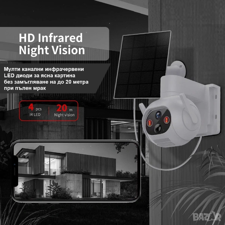 PTZ: върти се на 270° хоризонтално и 90° вертикално;
