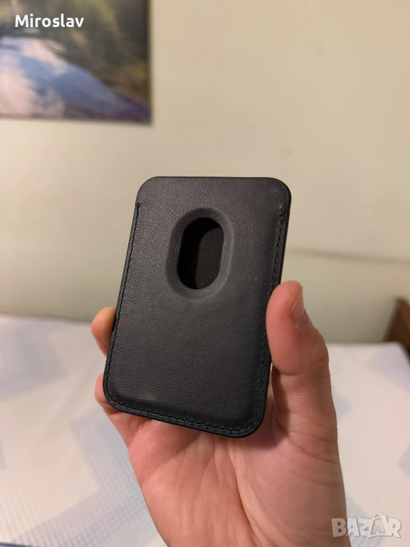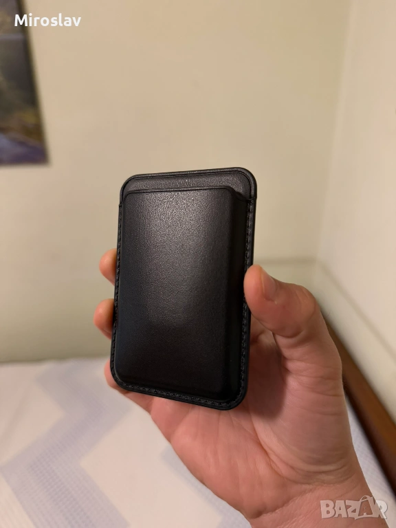 Продавам компактен , стилен калъф за карти от рециклирана еко кожа с магнитно затваряне и вграден магнит за закрепване към телефона.