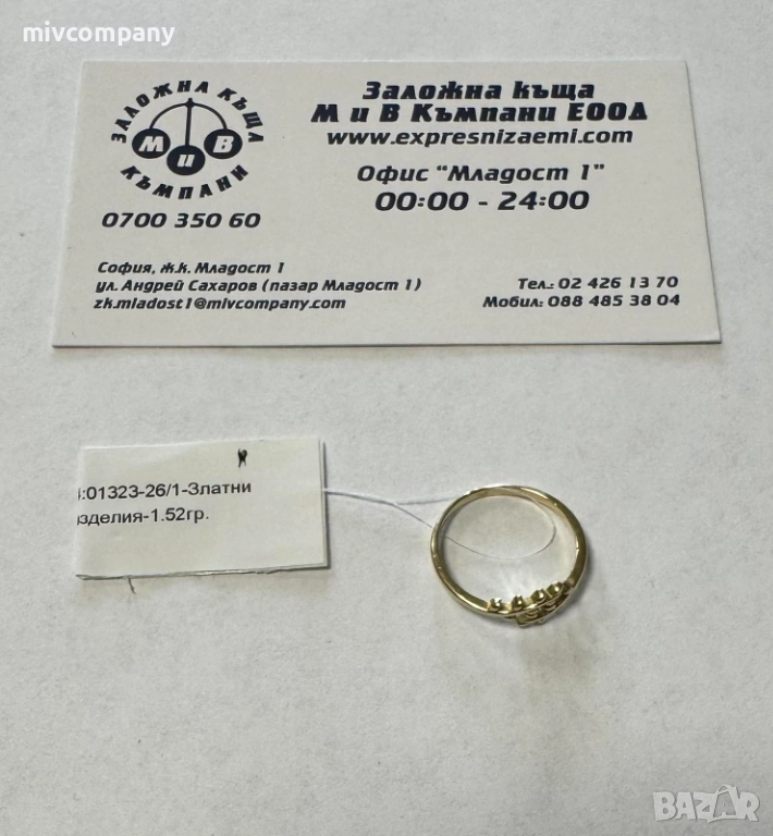 Златен пръстен 1.52гр., снимка 1 - Пръстени - 54278610 Златен пръстен 1.52гр., снимка 2 - Пръстени - 54278610 Златен пръстен 1.52гр., снимка 3 - Пръстени - 54278610 Златен пръстен 1.52гр., снимка 4 - Пръстени - 54278610 Златен пръстен 1.52гр., снимка 5 - Пръстени - 54278610 Златен пръстен 1.52гр., снимка 6 - Пръстени - 54278610 Златен пръстен 1.52гр., снимка 7 - Пръстени - 54278610 1/7