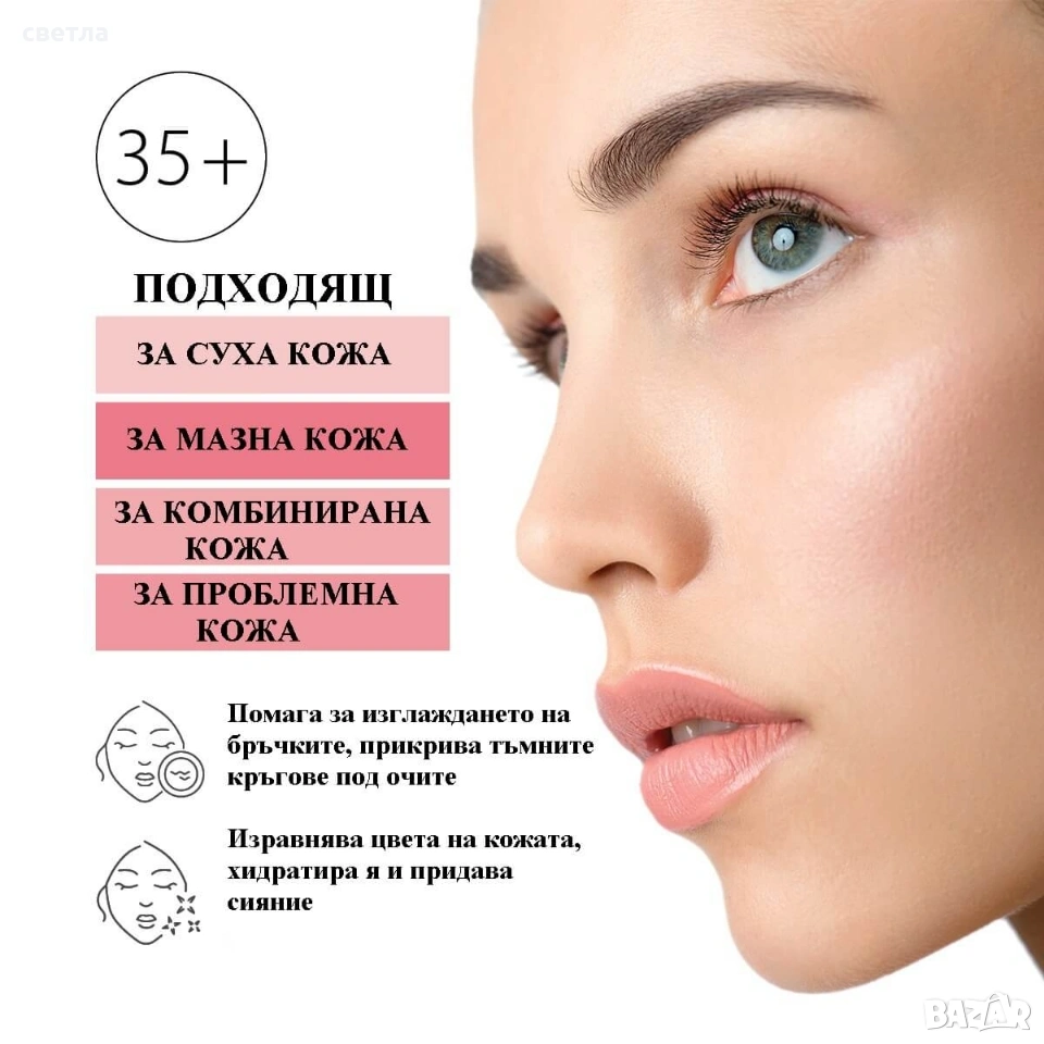 Тонален крем – продукт 2 в 1. Той не само прикрива несъвършенствата по кожата на лицето, но и се грижи за нея като я подхранва, защитава и не запушва порите. Благодарение на този продукт кожата ви ще има здрав и естествен вид. Това се дължи на екстракта от мечо грозде. Бъдете сигурни, че лицето ви ще бъде защитено от UV радиация през деня. Кремът се адаптира към тена на всяка кожа. Подходящ е за всеки тип кожа. ПРИЛОЖЕНИЕ С леки масажни движения кремът се нанася равномерно по цялата повърхност на лицето и шията. Препоръчва се за защита от неблагоприятните въздействия на околната среда и за прикриване на малките дефекти по кожата. АКТИВНИ СЪСТАВКИ Тоналният крем съдържа съставки, които активират клетъчната функция и укрепват клетъчните мембрани на кожата. Хидролизиран протеин от плацента (Hydrolyzed Placental Protein) – представлява животински протеини, получени от овча плацента. Съдържа комплекс от биологично активни вещества, аминокиселини, особено глицин и аланин, минерални соли на натрий, калий, хлорид, фосфор, нискомолекулни протеини, фибробластен растежен фактор, нервен растежен фактор (регулира хормоналния баланс), нуклеинова киселина, ензими, коензим Q10, витамини А, Е, С, D, PP, H, B1, B2, B3, B6, B12. Има биостимулиращо, имуномодулиращо, противовъзпалително действие, стимулира периферното кръвообращение. Използва се за възстановяване, подмладяване, намаляване на бръчките, подобряване цвета на кожата и предотвратяване на пигментацията. Екстрактът от овча плацентата не съдържа хормони и не води до привикване. Арбутин (Arbutin) – получава се от листата на мечо грозде и има избелващо действие. Той прониква дълбоко в кожата и блокира синтеза на меланин. Тази съставка влияе върху процеса на пигментообразуване, а в същото време не пречи на жизнената дейност на меланоцитите и другите кожни клетки. Добавки на базата на водорасли – тонизират, освежават и подхранват кожата. Титанов диоксид – матира кожата и я предпазва от ултравиолетовите лъчи. Стеаринова киселина – почиства, увеличава еластичността и възстановява липидната мантия на кожата.