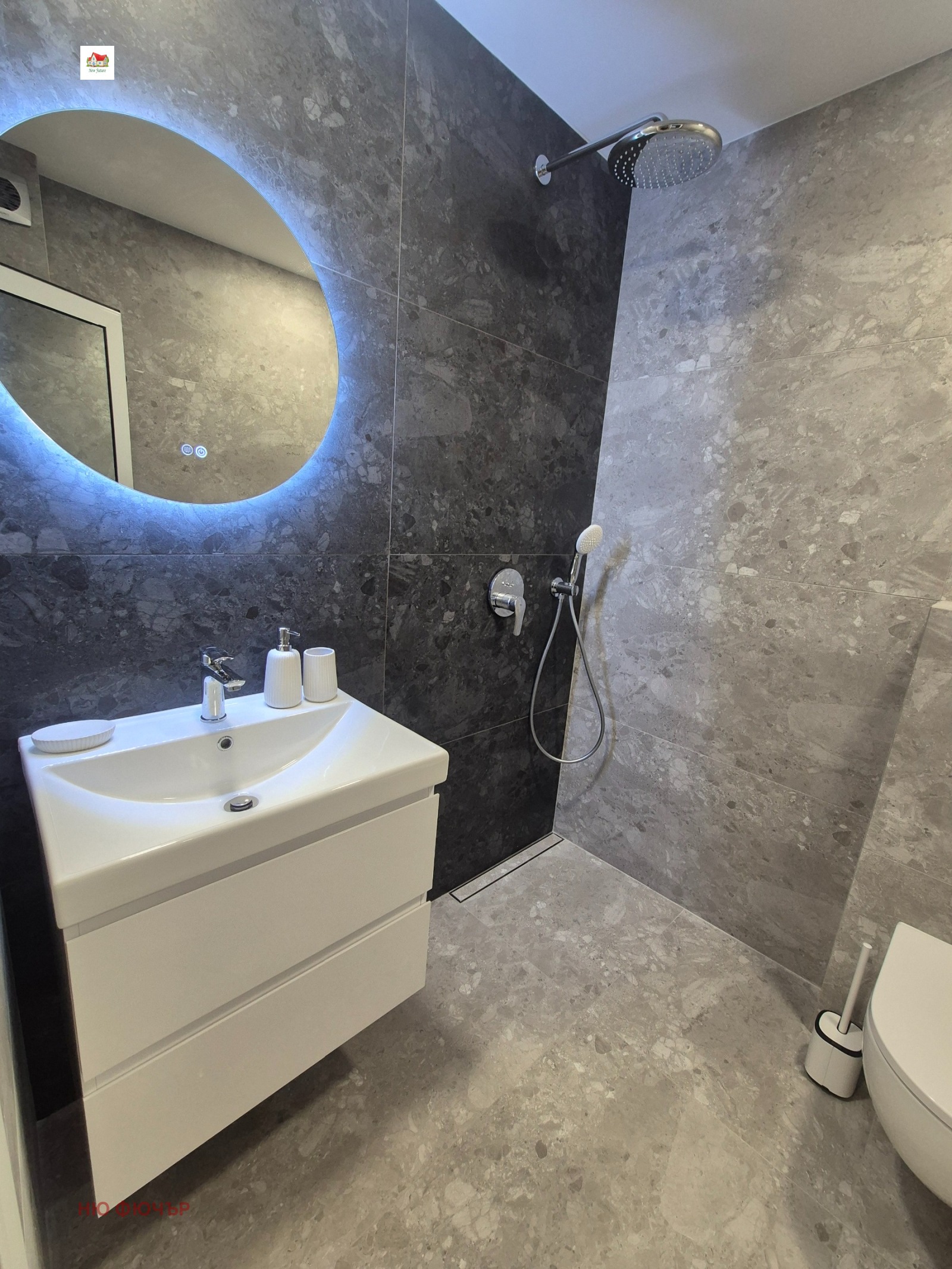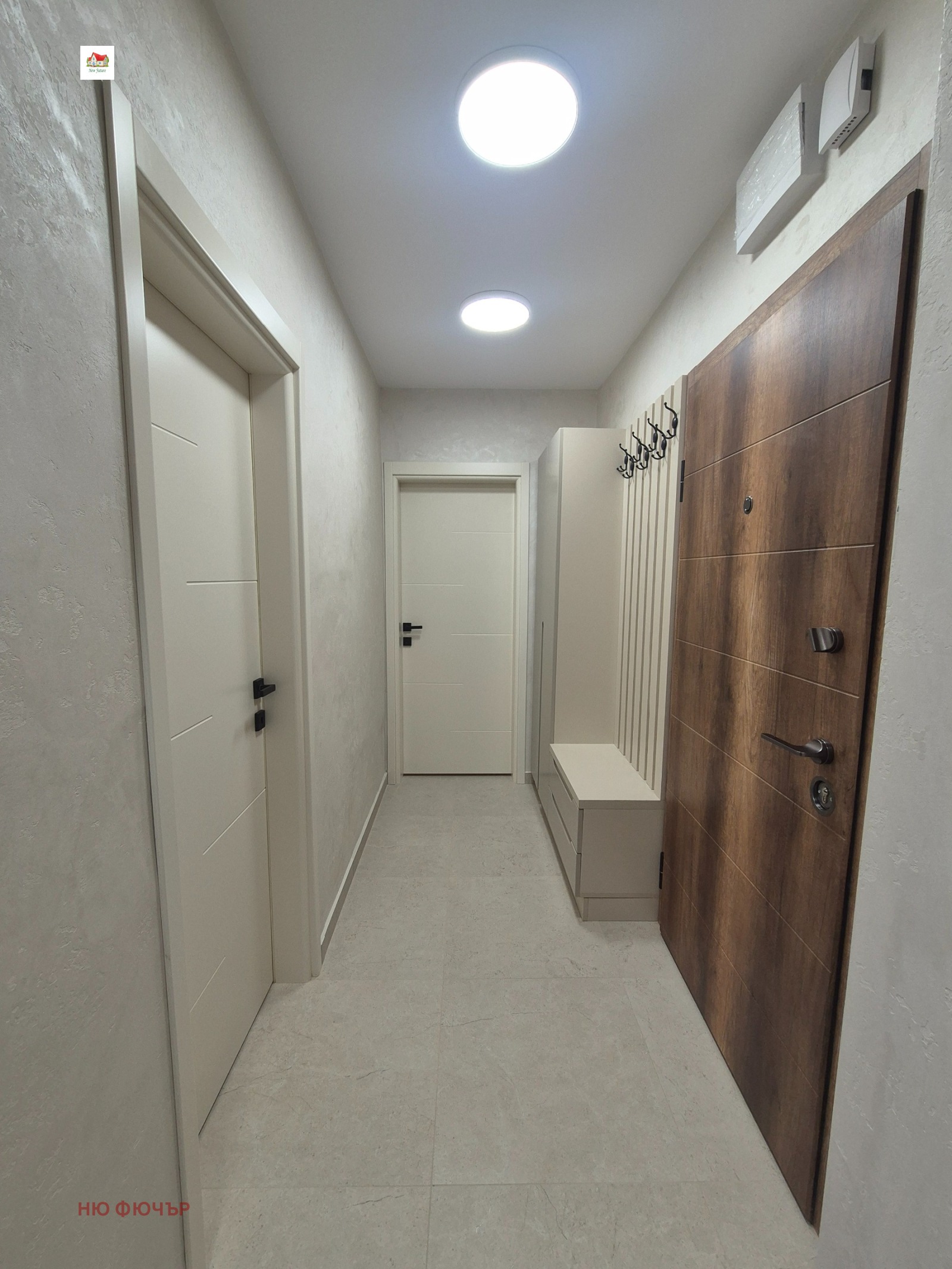 РАЗПРЕДЕЛЕНИЕ: коридор, хол с кухненски бокс, две спални, баня с тоалетна и просторна тераса. Във всички стаи е поставена настилка от масивен трислоен паркет, което придава съвсем различно усещане за качество, стабилност и дълготрайност. Кухнята е голяма, с много шкафове за съхранение, кухненски плот от технически камък, оборудвана с висок клас електроуреди, включително хладилник Liebherr и подбрани решения, насочени към удобство и дългосрочно ползване. Подменени изцяло ВиК и електро инсталация, а банята е изпълнена с модерна визия и оборудване от премиум клас, с душ система Grohe и структура за вграждане Geberit. Входната врата е блиндирана. Интериорни врати от MDF. Висок клас гранитогрес в коридора и банята.