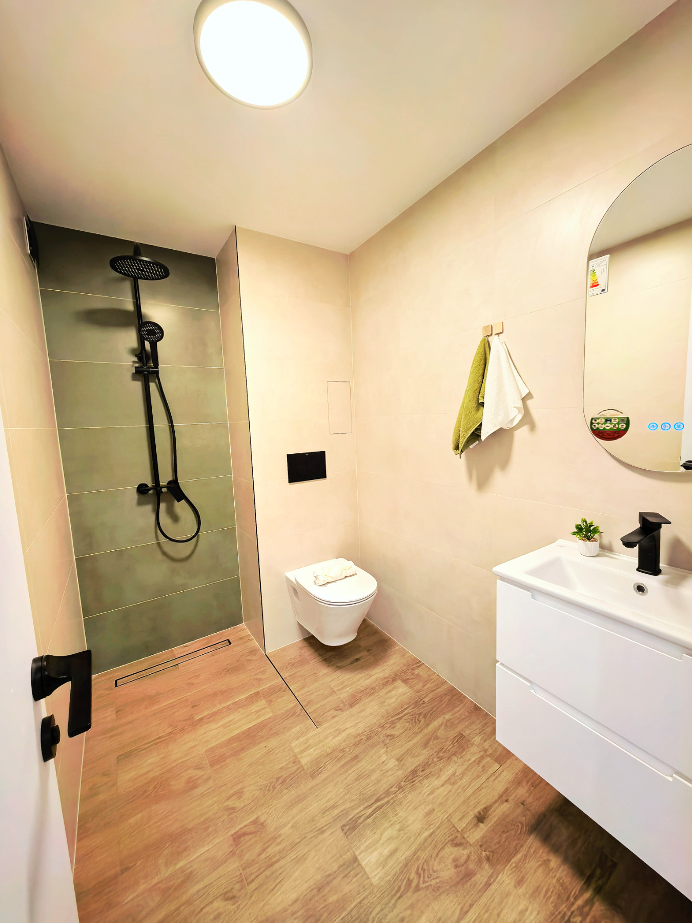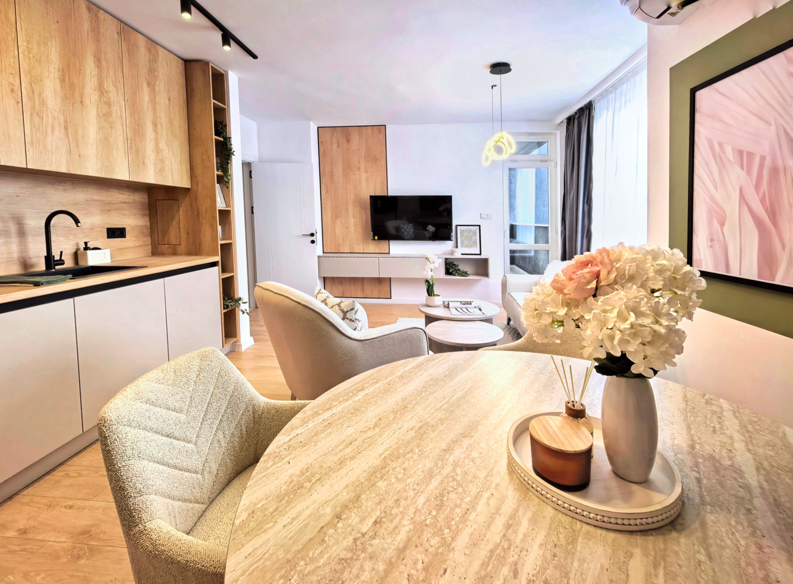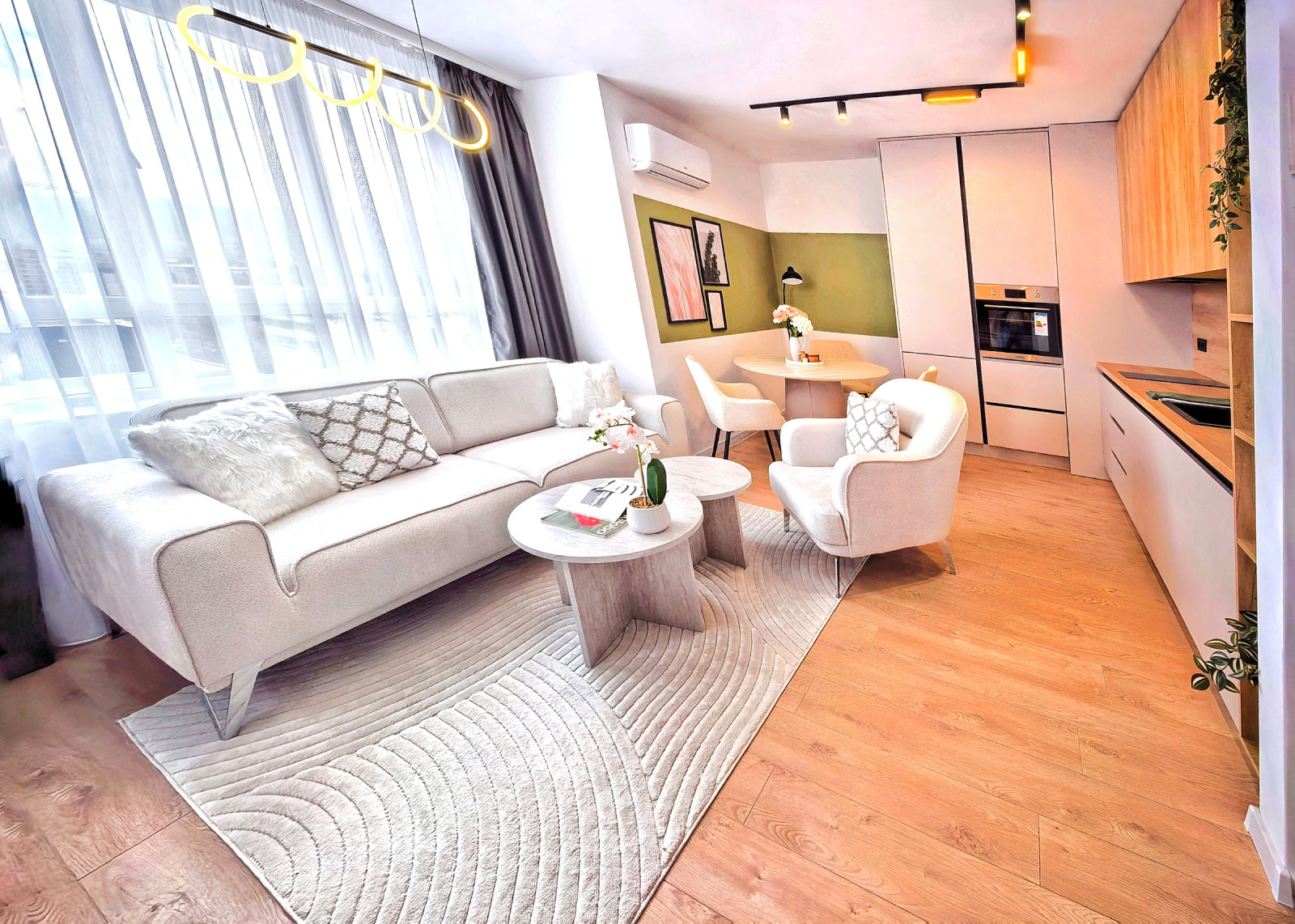 Апартамента разполага с всички необходими електроуреди, всяка стая е с климатик.