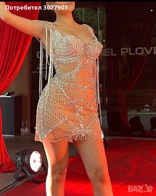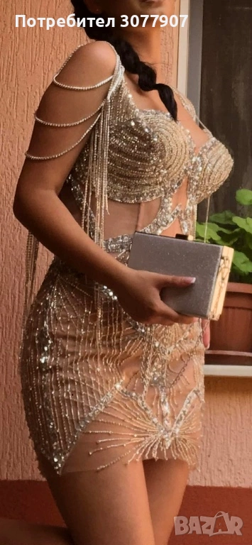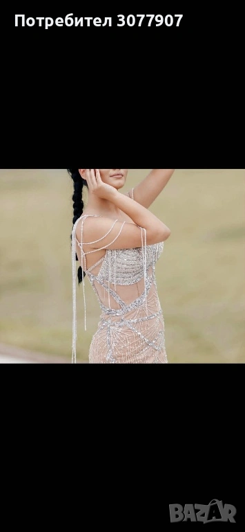 Бална рокля със мъниста в сребрист цвят. Стилна и елегантна, подходяща за специално събитие. Идеална за жена, която обича да бъде в центъра на вниманието. Носена само веднъж.