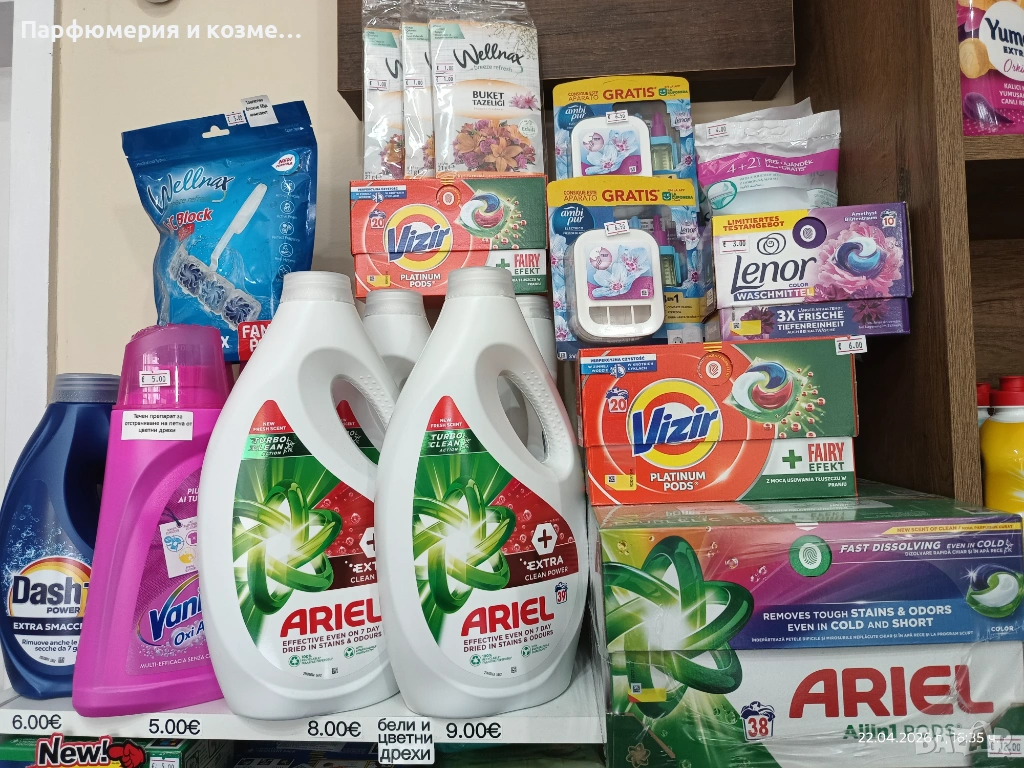2. Течен перилен препарат ARIEL+ extra clean power 34пр. за бели и цветни дрехи- 8.00€