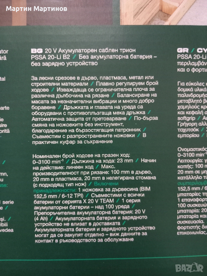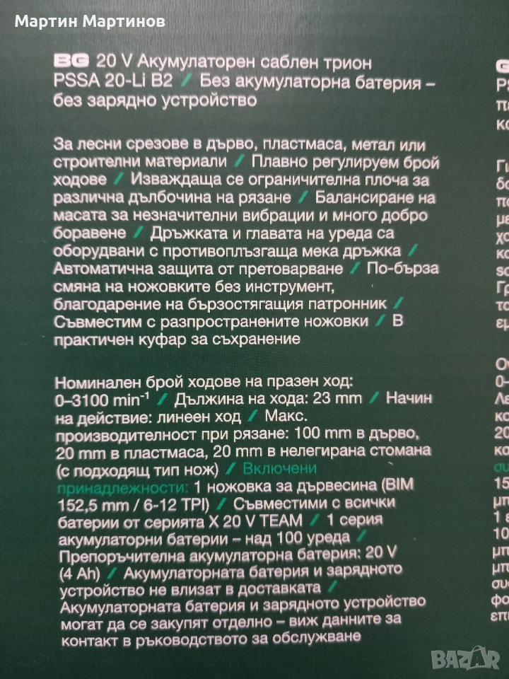 Акумулаторни Саблени Триони PARKSIDE → Обява 54280822