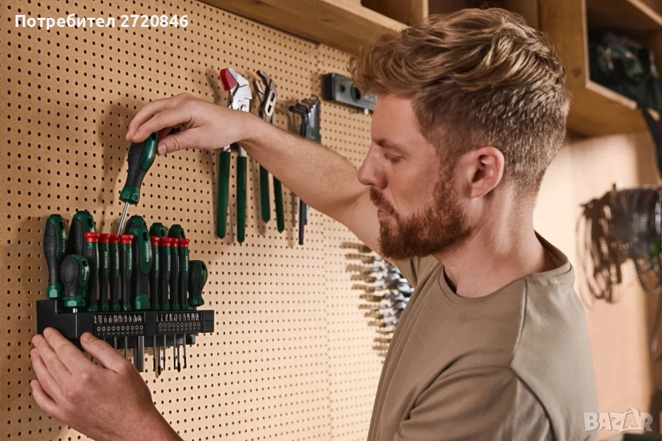 С комплекта отвертки PARKSIDE® със стенна стойка сте перфектно оборудвани за всички ваши нужди от завинтване у дома или в работилницата. Този 37-частичен комплект предлага богата селекция от отвертки и битове, всички с ергономични дръжки и магнитни накрайници. Практичното стенно държане поддържа инструментите ви организирани и осигурява бърз достъп. Независимо дали сглобявате мебели, ремонтирате електрически уреди или просто затягате винт, този комплект няма да ви разочарова и ще направи всяка работа удоволствие.