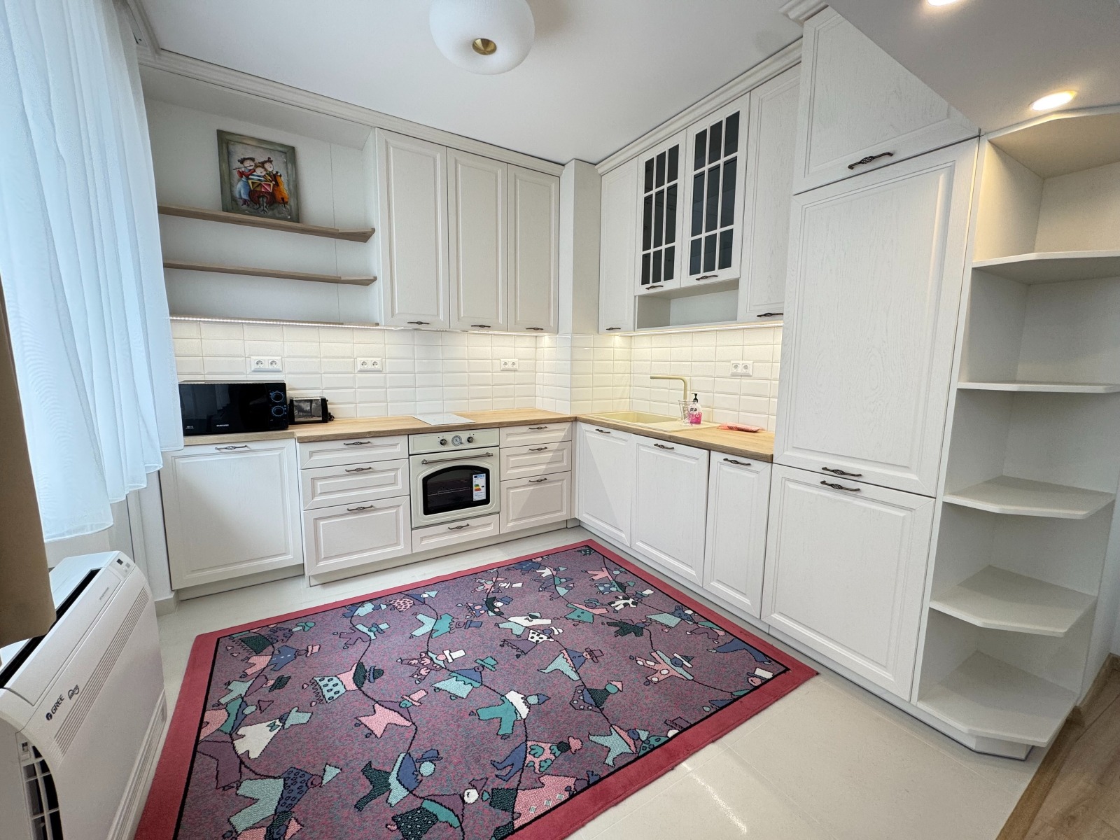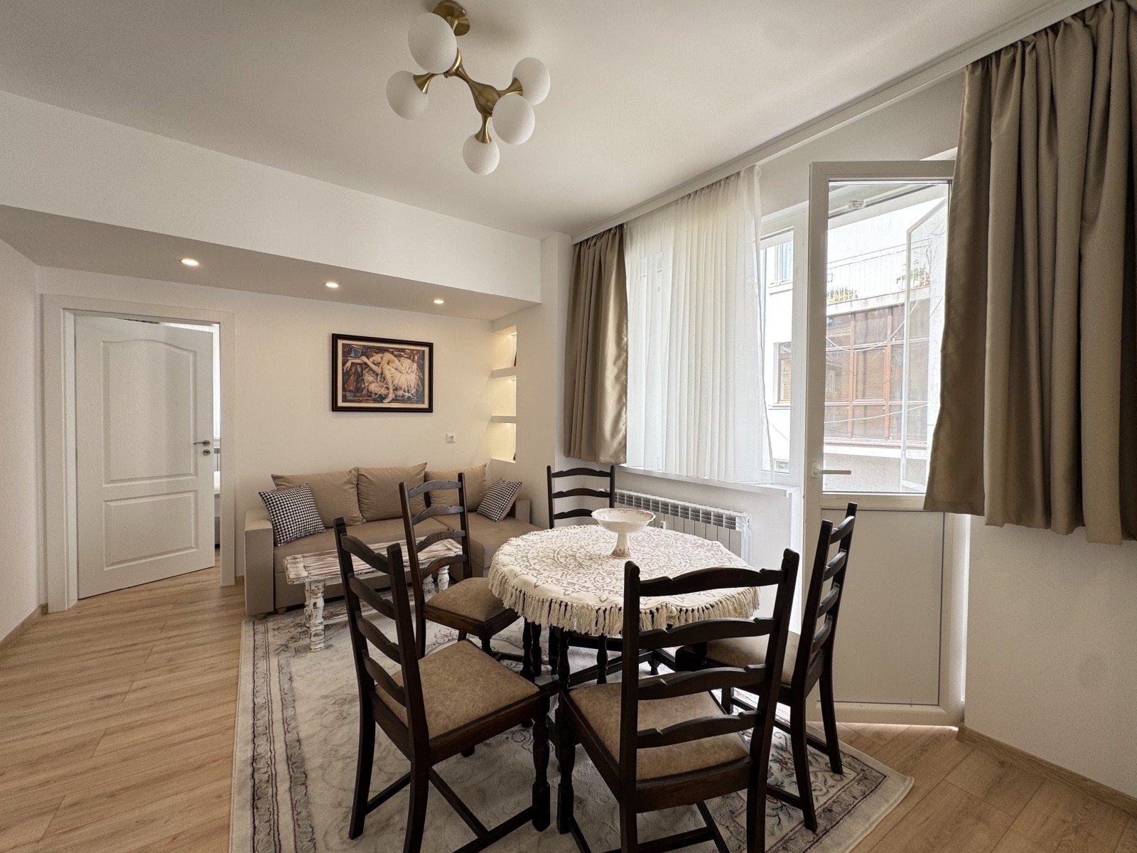 The apartment has an area of 100 sq m, after a total renovation with new furniture and electrical appliances, selected with comfort and long-term use in mind. The apartment is bright, with good internal organization, very warm in winter and cool in summer.