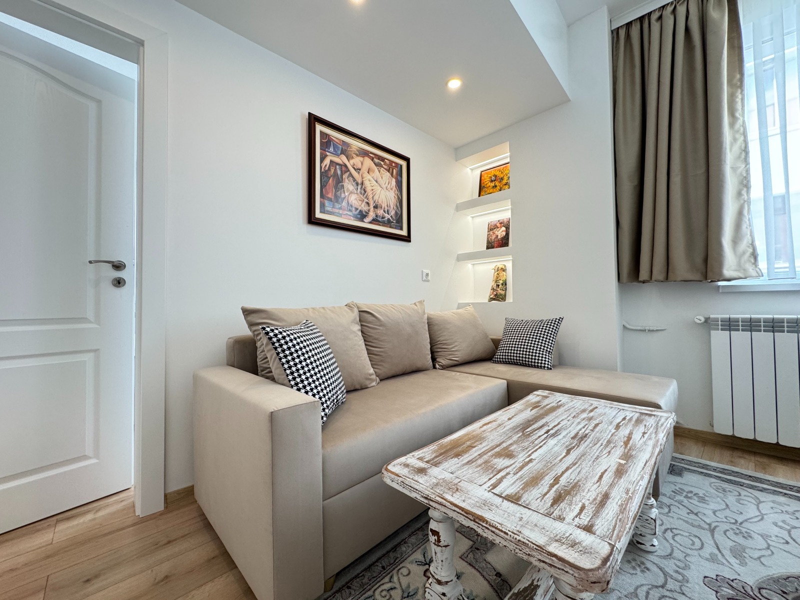 A newly furnished and functional two-bedroom apartment is for rent, located at 57 Tsar Asen Street, in the heart of Sofia. The location is extremely convenient, within walking distance of Vitosha Blvd., key boulevards, public transport stops, shops, restaurants and administrative points.