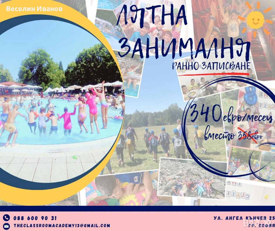 Ние отThe ClassroomSchool Academy организираме Лятна занималня, сбъдваща мечти, развиваща таланти, затвърждаваща знания, опознаваща природата и създаваща онези незабравими детски спомени.