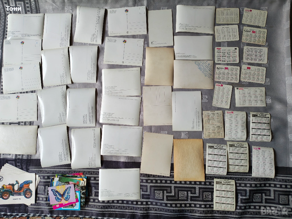 - Японски и съветски внос: Портрети на жени („красавици“), екзотични птици, цветя (рози) и кораби. Тези с надписи на гърба „Made in Japan“ или с цени в рубли (копейки) са класика от онова време.