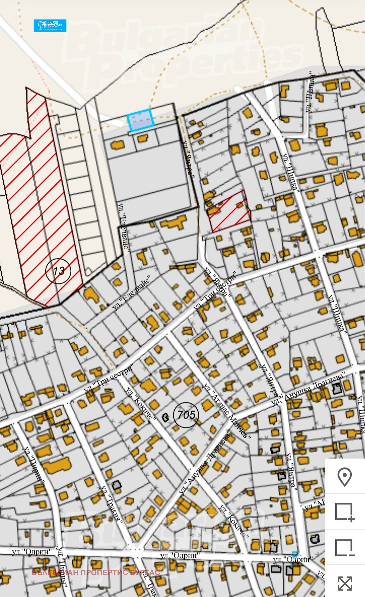 Парцелът е с площ 655 кв.м, като към него се включва и 1/6 идеална част от частен вътрешен път, осигуряващ удобен достъп до имота.