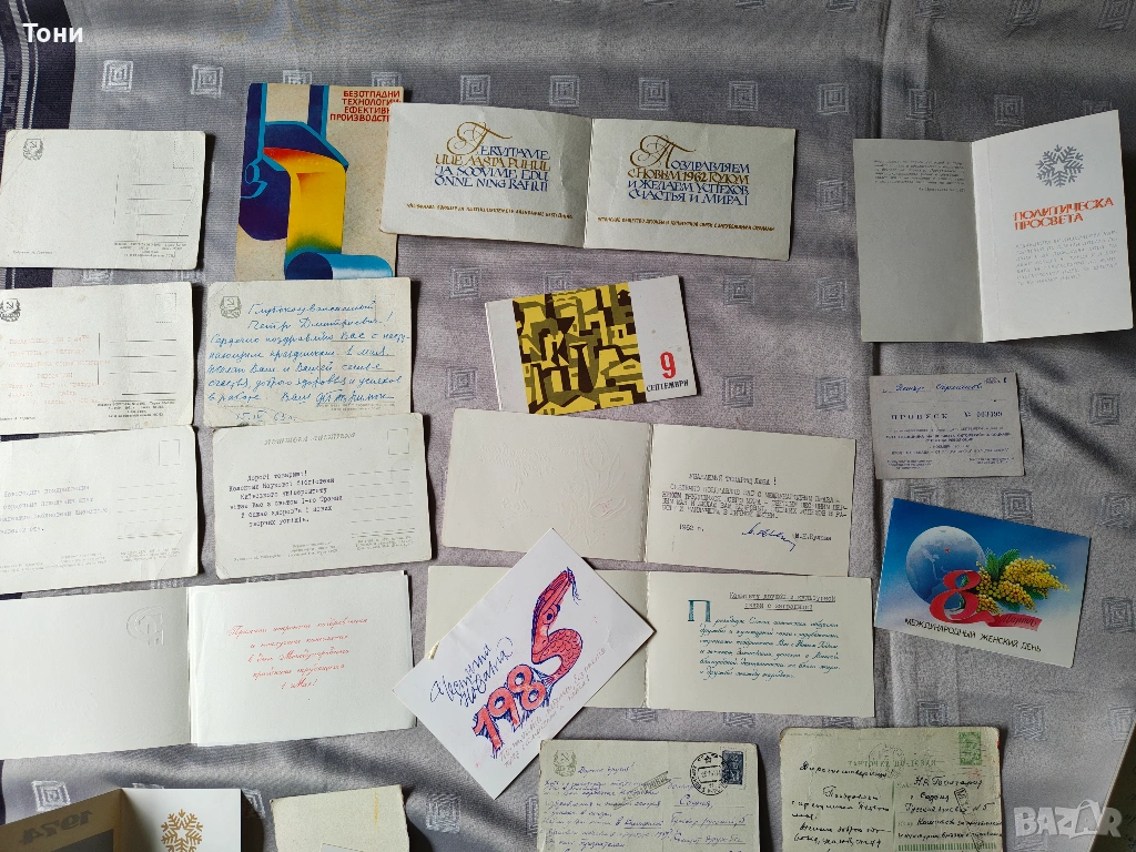 Колекция от оригинални социалистически поздравителни картички, основно от съветската епоха (СССР), но вероятно включващи и български издания. Колекцията е фокусирана върху емблематични празници и идеологически теми, характерни за периода между 1960-те и 1990-те години.