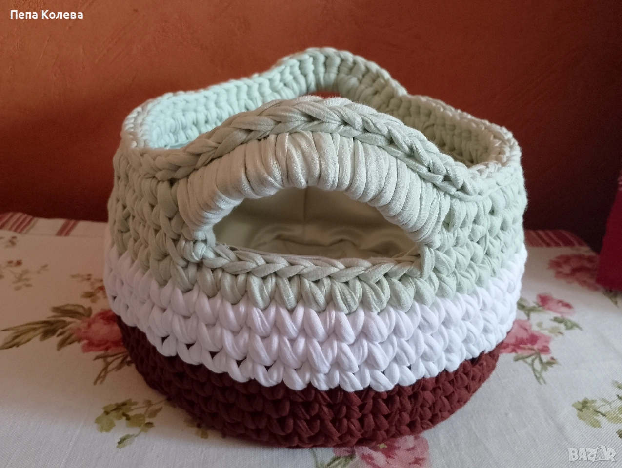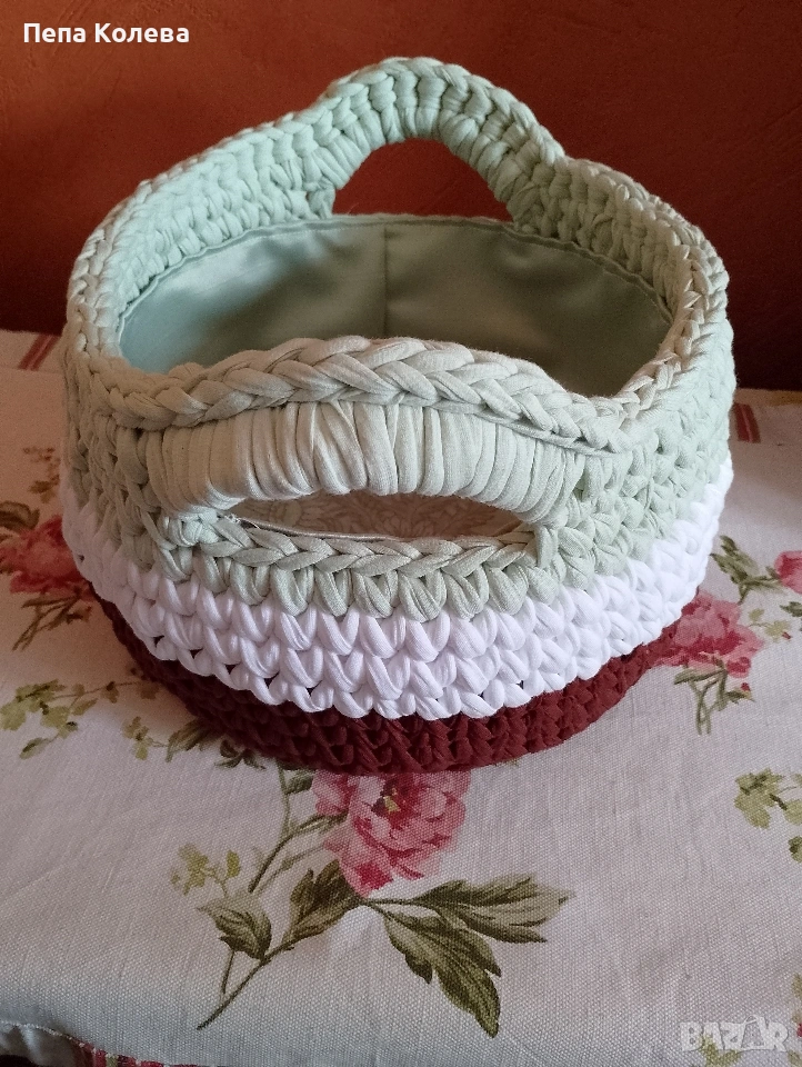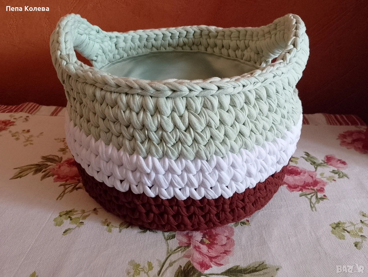 Голям панер от прежда Макарон -ръчно плетиво → Обява 54281879