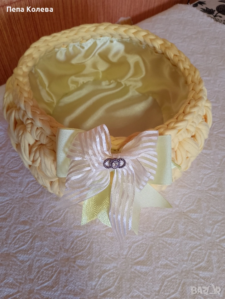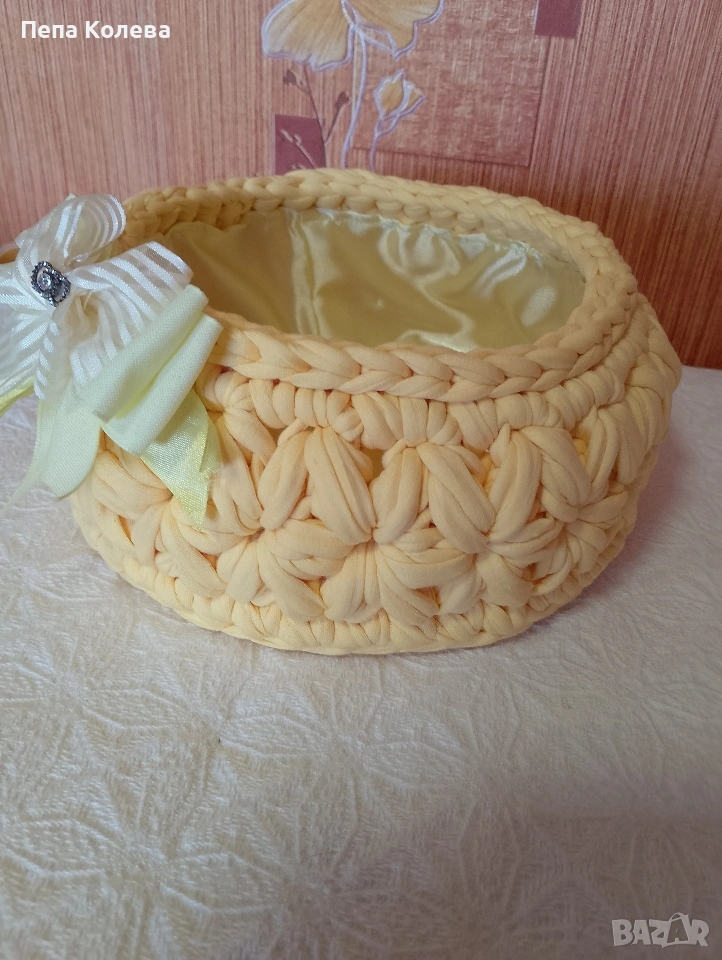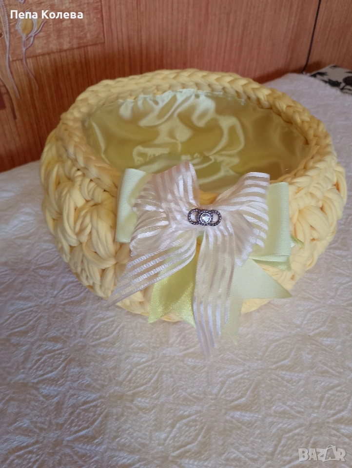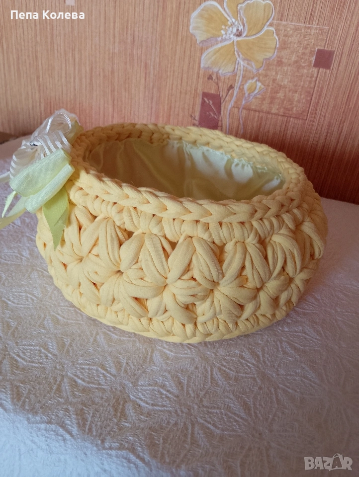 Панер-ръчно изработен от прежда Макарон с размери диаметър на дъното 21 см и височина 10 см и подплата.