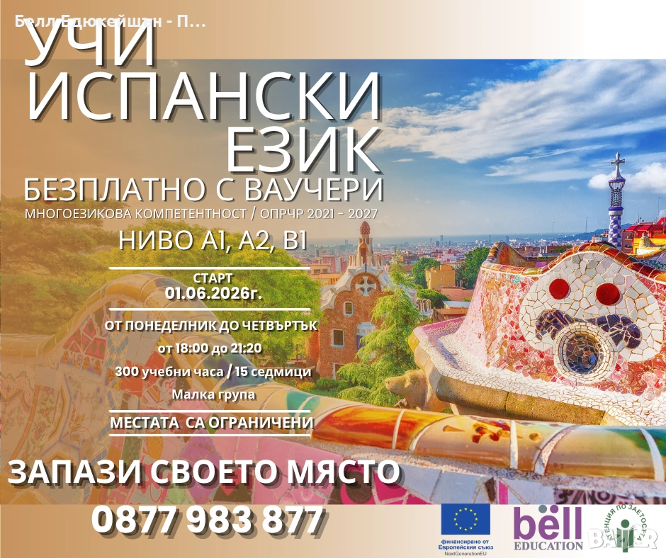 👉 Стартира нова ОНЛАЙН интензивна група по ИСПАНСКИ ЕЗИК с ваучери по ОПРЧР 2021–2027 за: