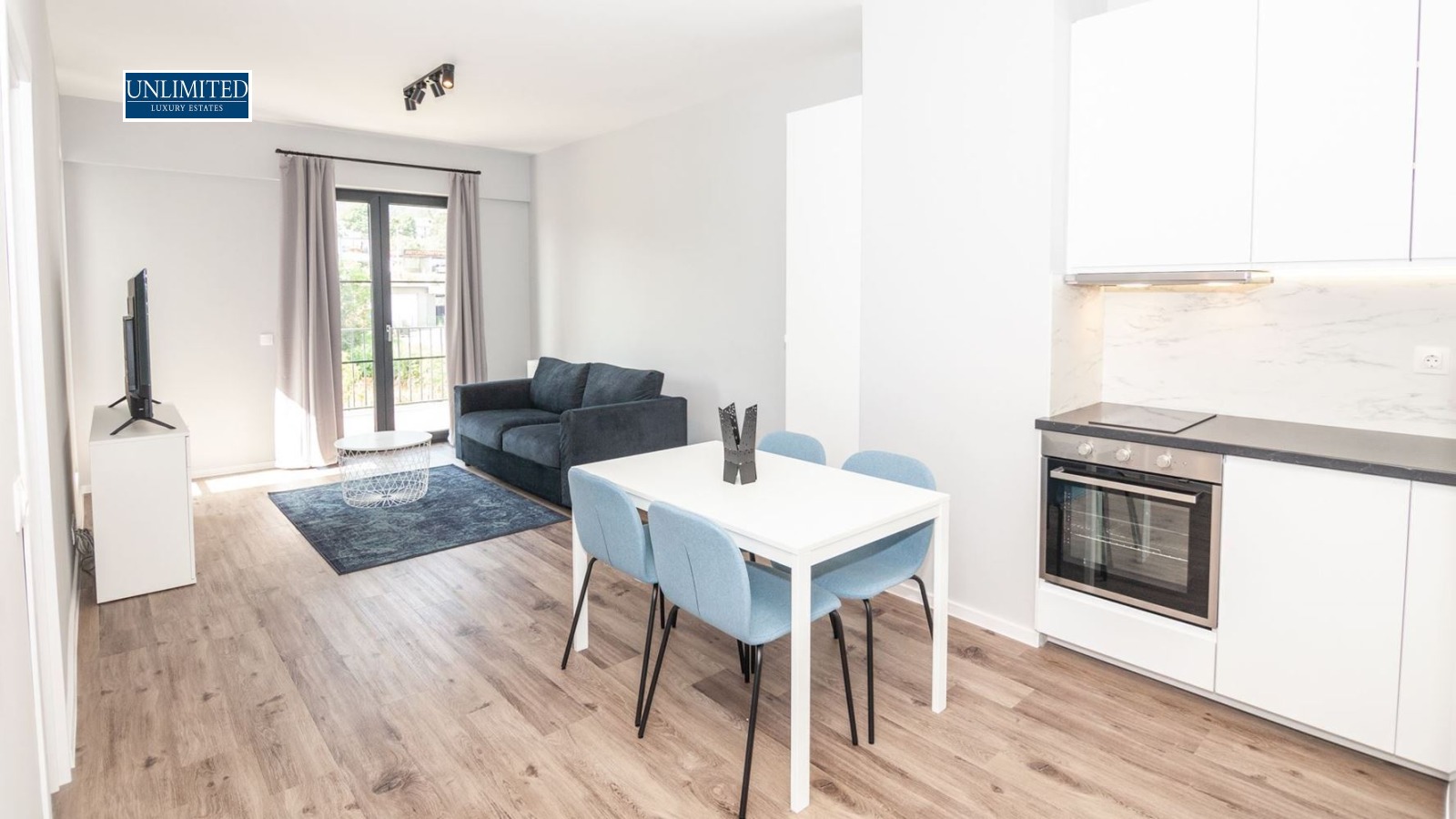 Жилището е завършено с висок клас материали, в светли, модерни тонове, с акцент върху комфорт и практичност. Дневната зона е просторна и добре осветена, с директен достъп до балкон, който предлага приятна гледка към вътрешния двор на комплекса.