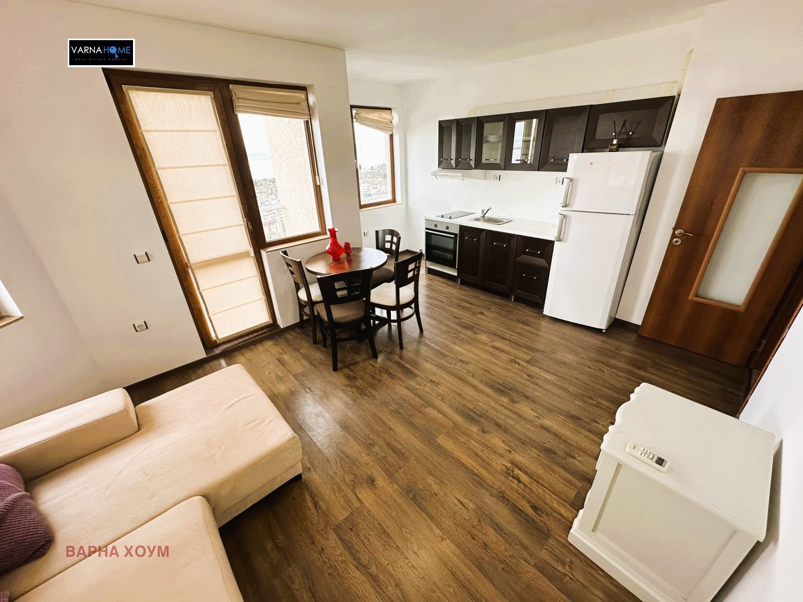 Предлагаме Ви тристаен, обзаведен апартамент, в района на квартал Бриз. Имотът е с площ от 73 кв. м и се състои се от: Коридор, дневна с кухненски бокс, две спални, баня с тоалетна, перално помещение, две панорамни тераси с нескриваема морска панорама и прилежащо избено помещение. Предлага се обзаведен и оборудван с всичко необходимо за едно домакинство. Отоплението е с климатици. В цената е включено ползване на наземно паркомясто.