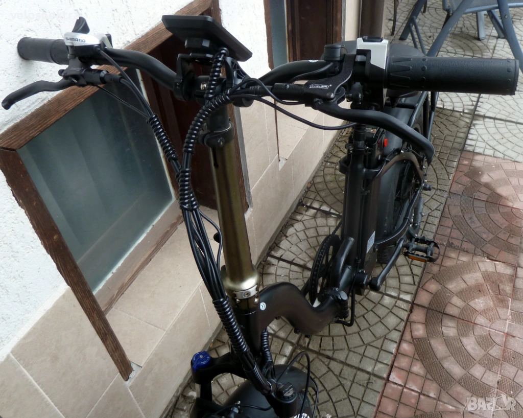 Кормилото, рамката и педалите се сгъват и колелото става компактно.