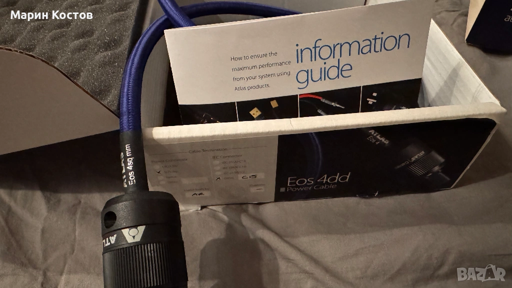 Продавам захранващ кабел на английската фирма Atlas с дължина 1.5 метра. Кабела е в перфектно състояние. Аз съм първи собственик от около 4 години. Причина за продажбата разбира се ъпгрейд.