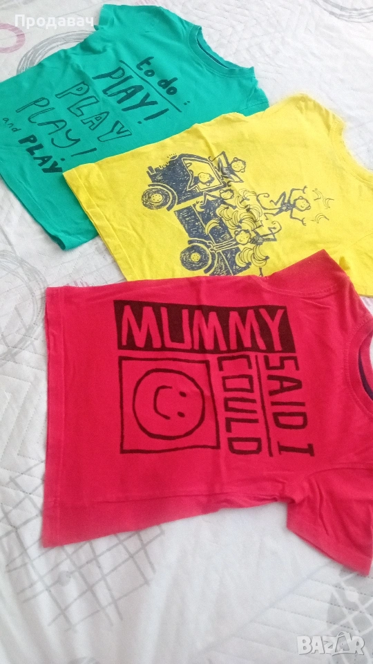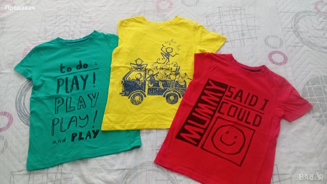 Лот за момче от 4 фланелки и два чифта къси панталонки. Дрешките са много запазени с минимални следи от употреба.