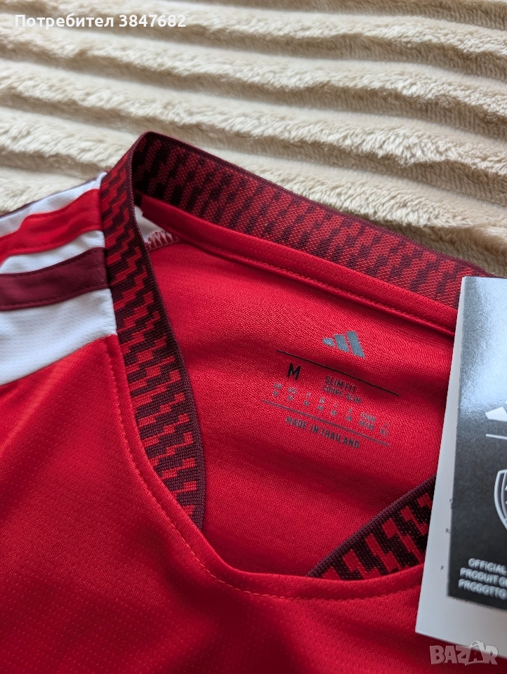 Продавам нов екип на Арсенал от следващия сезон. Закупен от Германия. Размер М. Още е с етикет - подходящ за подарък. Логата са шити и няма да се изтъркат и отлепят след време както повечето футболни тениски. Изработката е страхотна и бродерията по яката е главната причина да я купя. Не ми стои добре. Мога да я пратя по Еконт или Спиди с опция преглед и тест.
