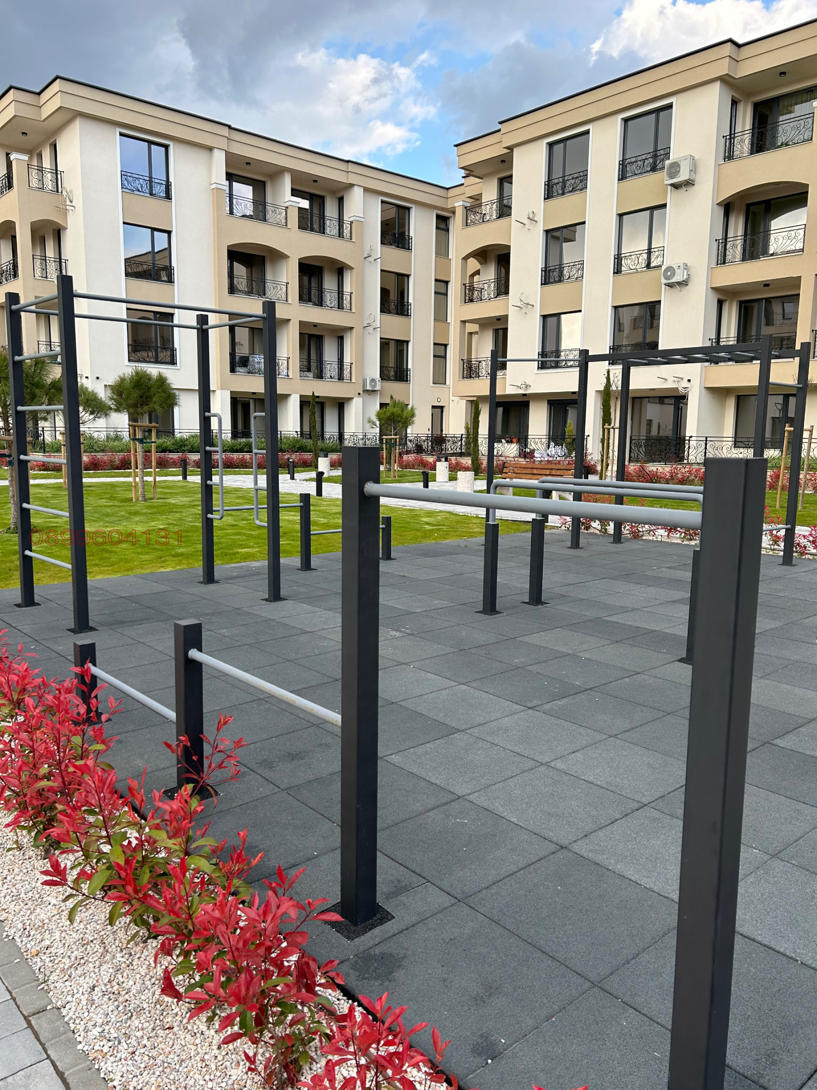 Комплексът разполага със собствен двор с много зеленина и пространства за почивка, детски кътове, фитнес на открито и др.